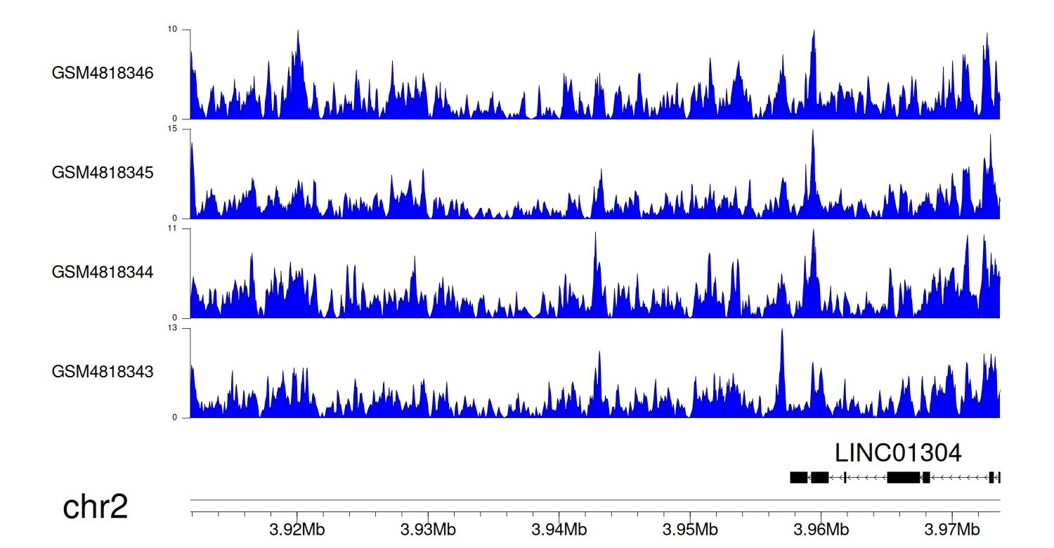 > Dataset: GSE131257 - LINC01304 peak across samples