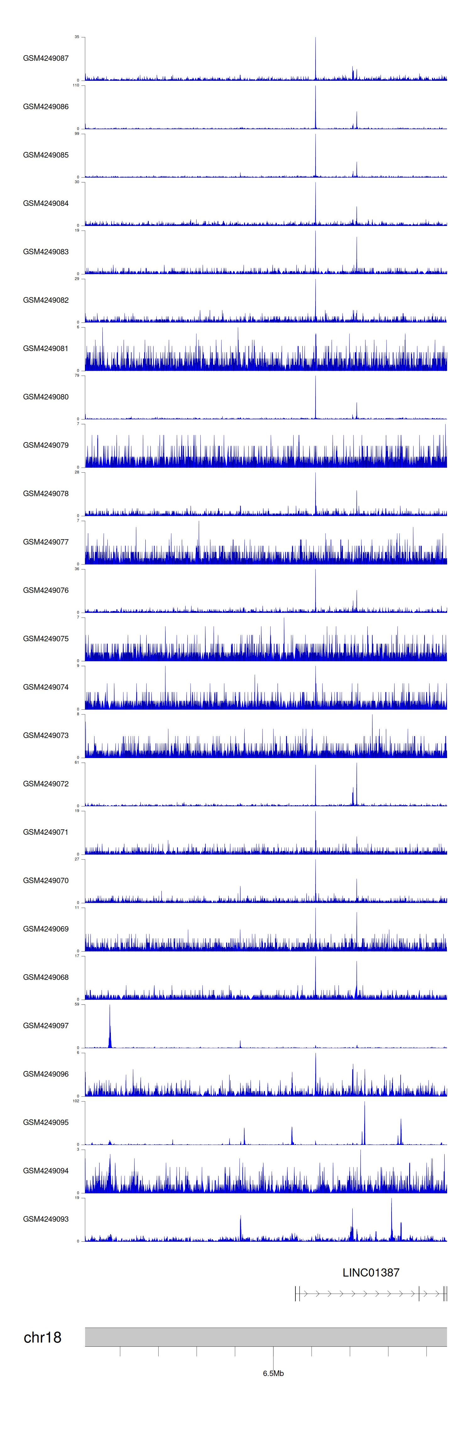 > Dataset: GSE143026 - LINC01387 peak across samples