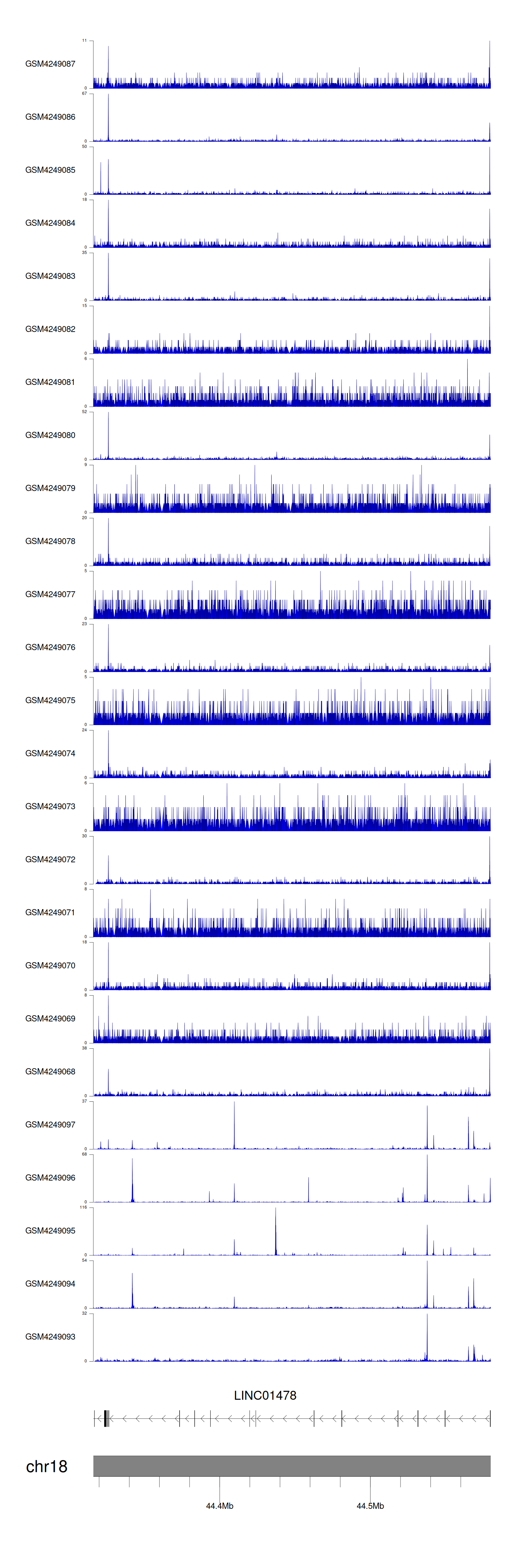 > Dataset: GSE143026 - LINC01478 peak across samples