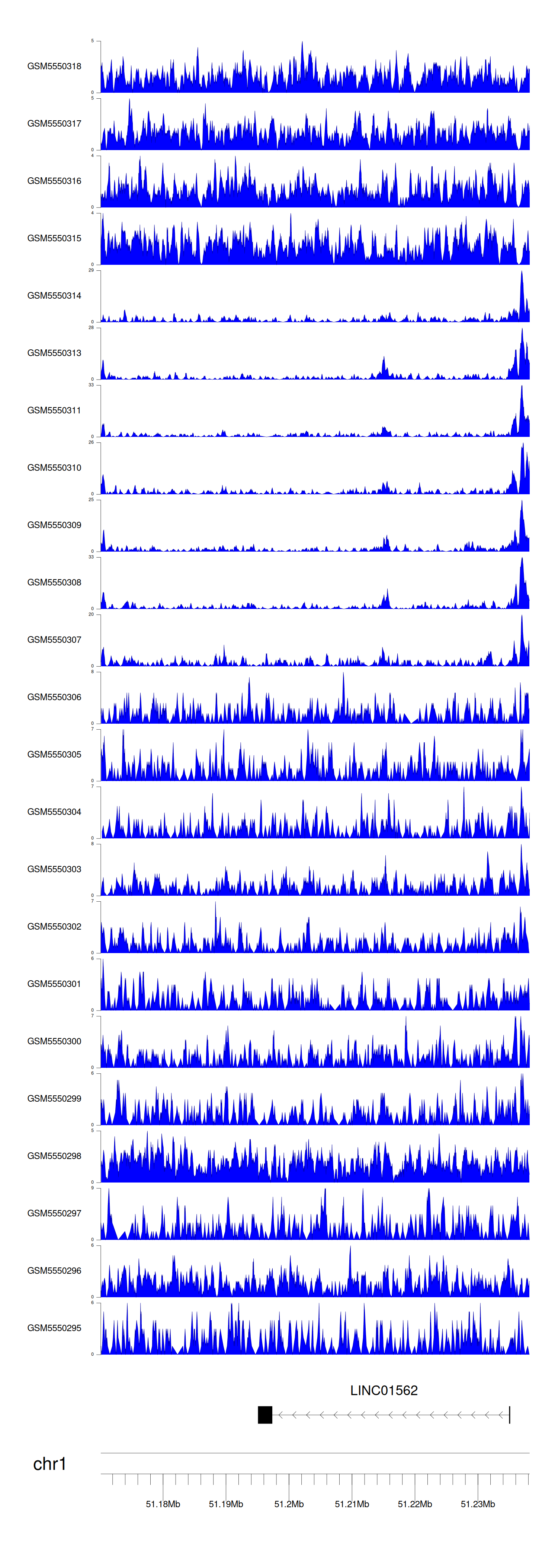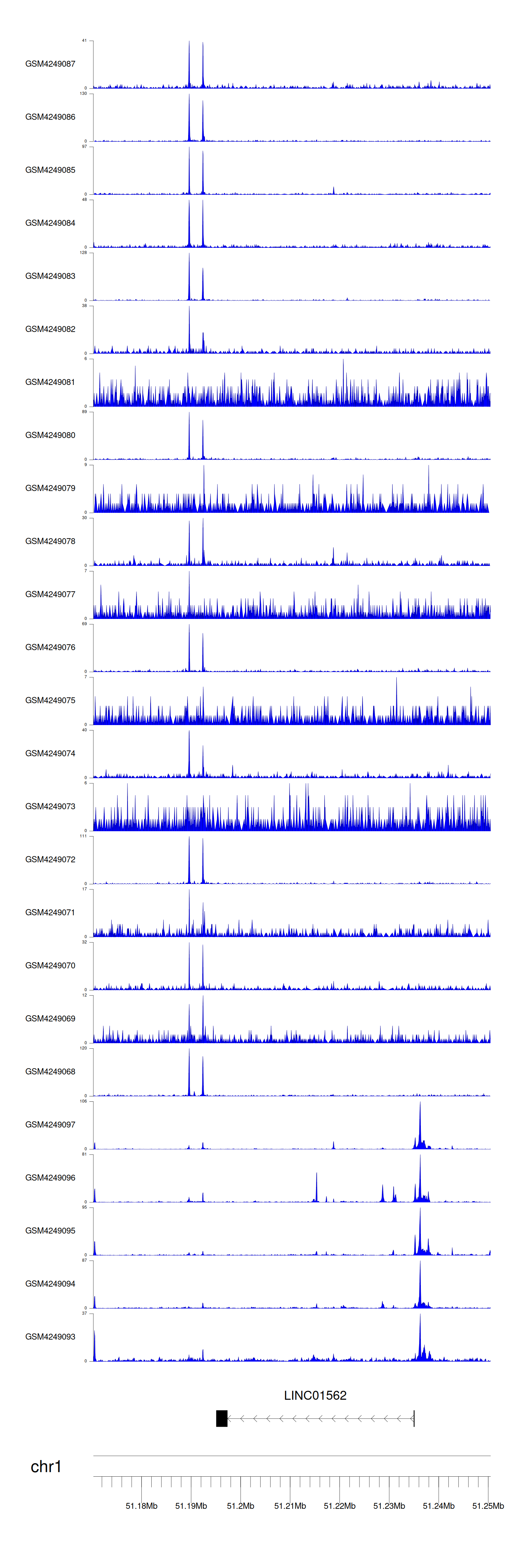 > Dataset: GSE143026 - LINC01562 peak across samples