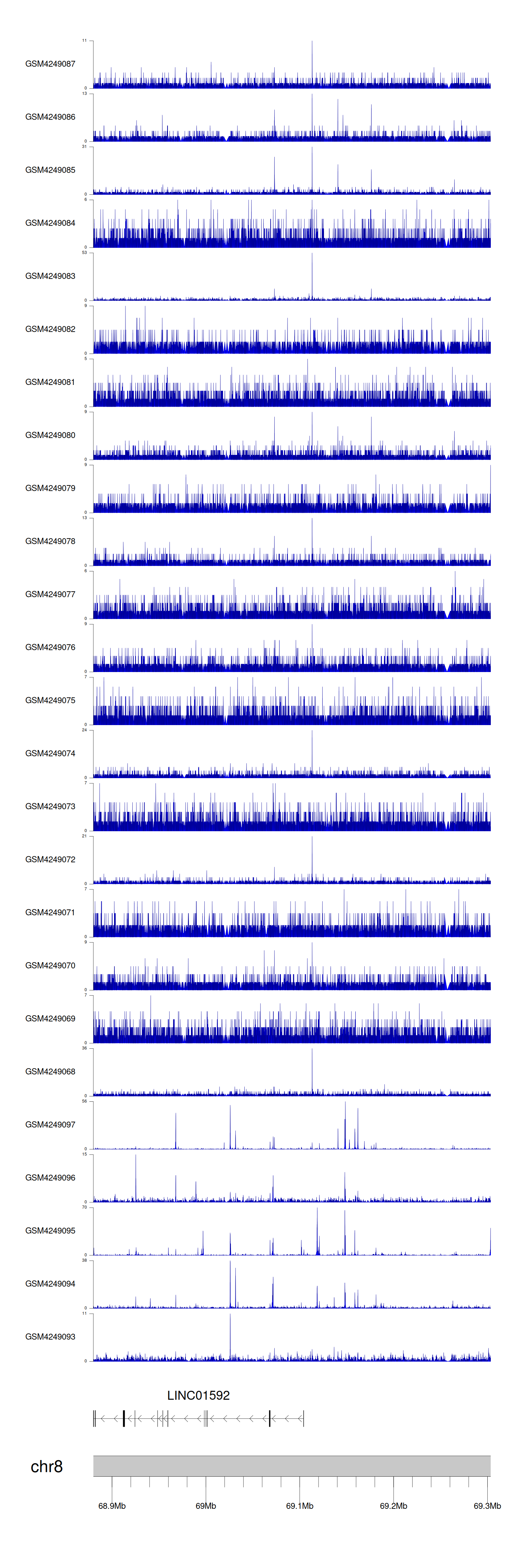 > Dataset: GSE143026 - LINC01592 peak across samples