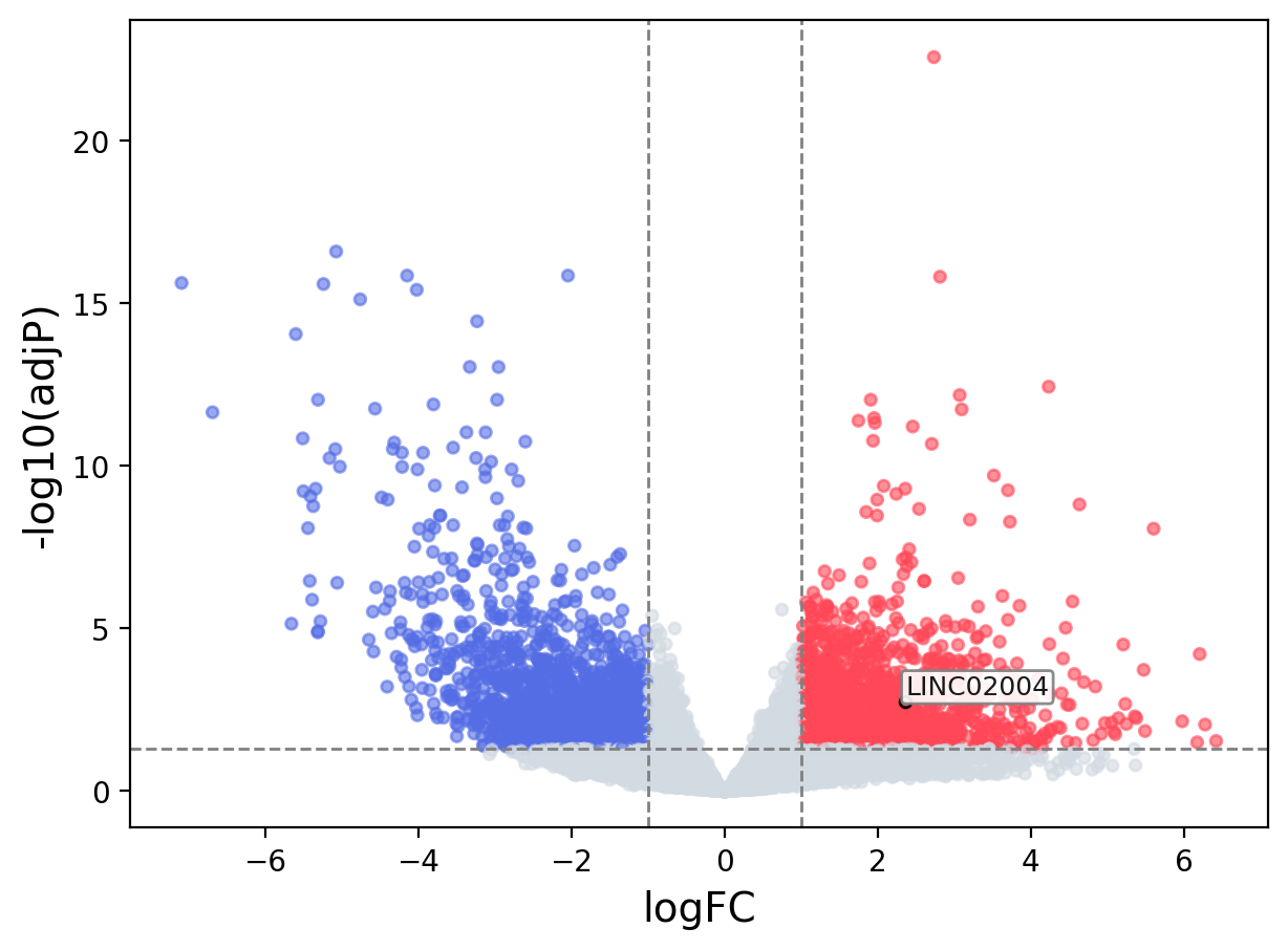 When the query gene is differentially changed in the dataset, a volcano/bar plot will be displayed.
