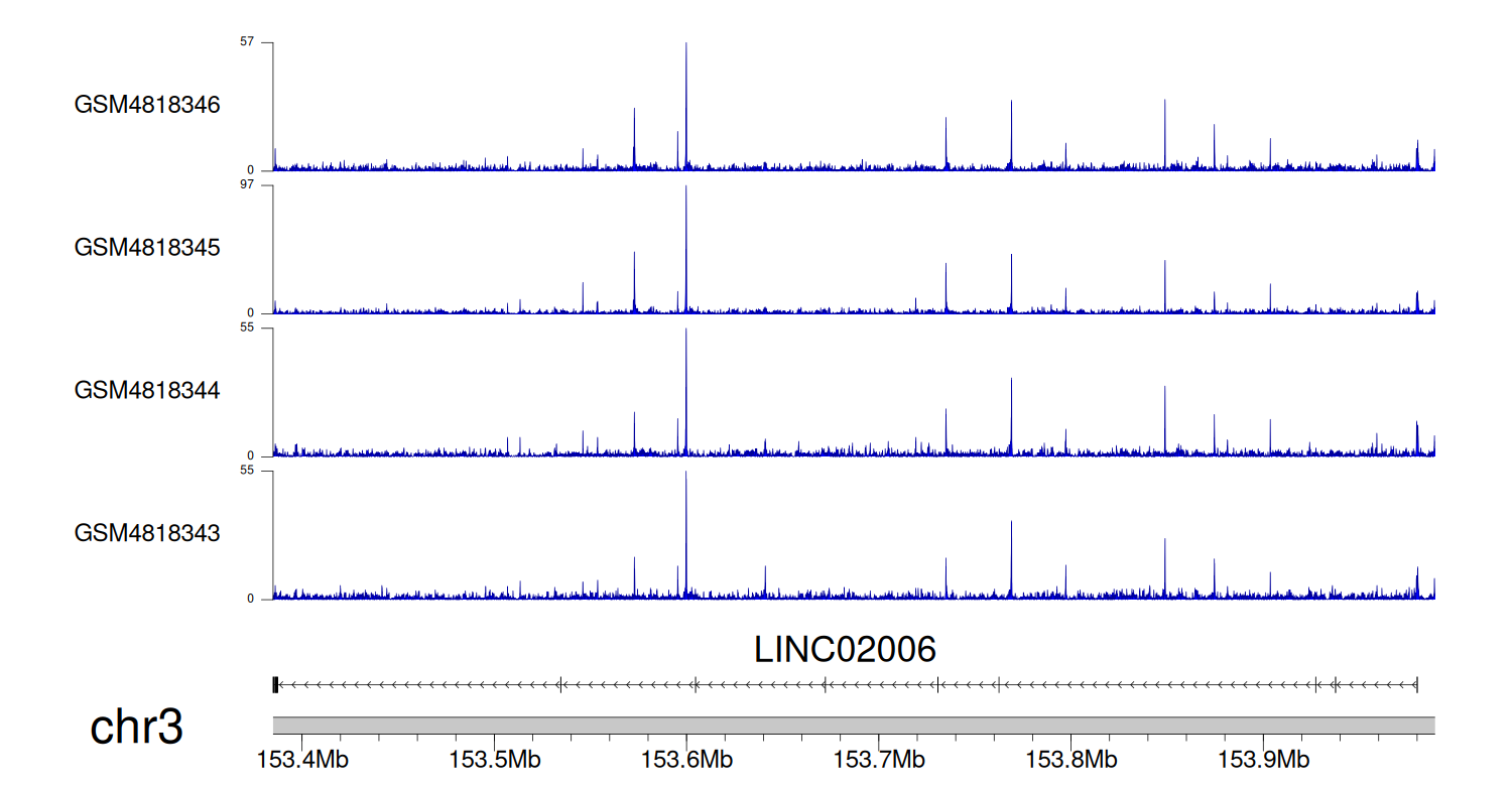 > Dataset: GSE270130 - LINC02006 peak across samples