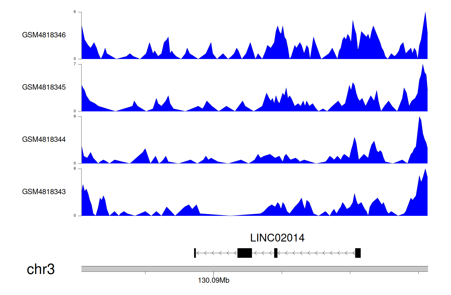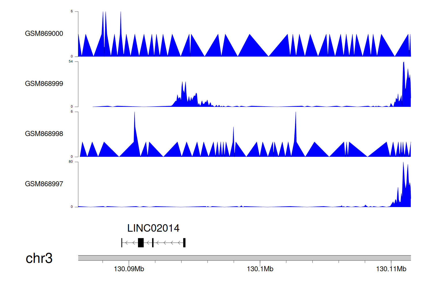 > Dataset: GSE131257 - LINC02014 peak across samples