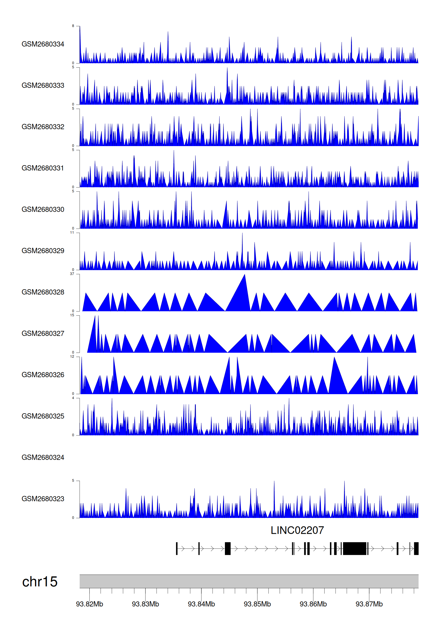 > Dataset: GSE68402 - LINC02207 peak across samples