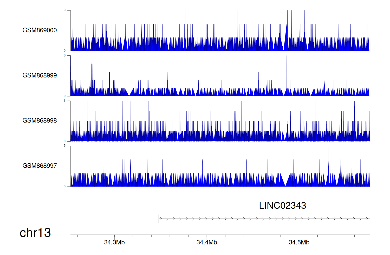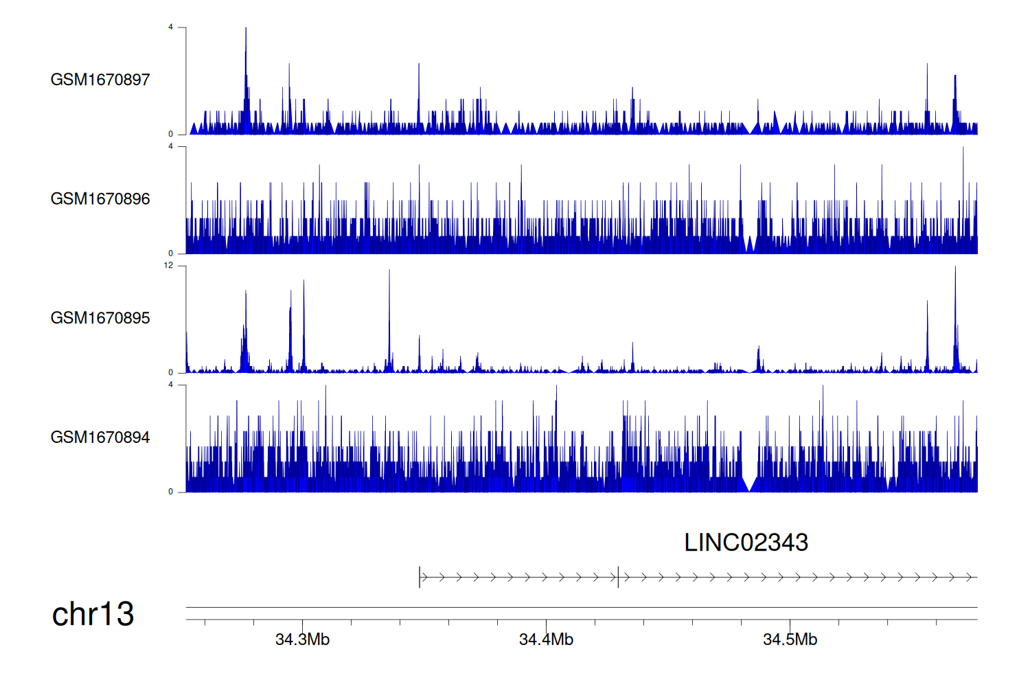 > Dataset: GSE68402 - LINC02343 peak across samples
