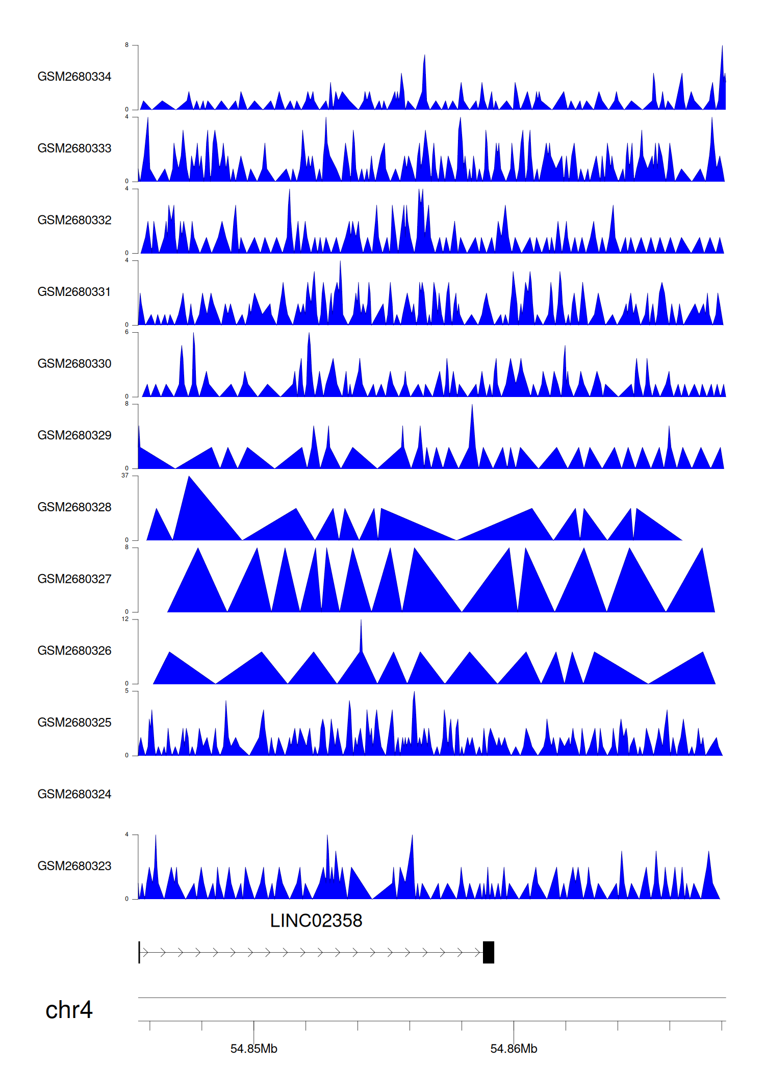 > Dataset: GSE68402 - LINC02358 peak across samples