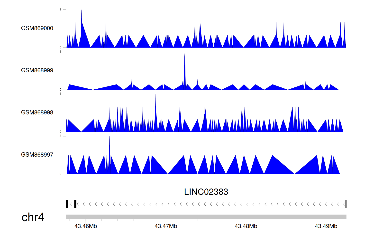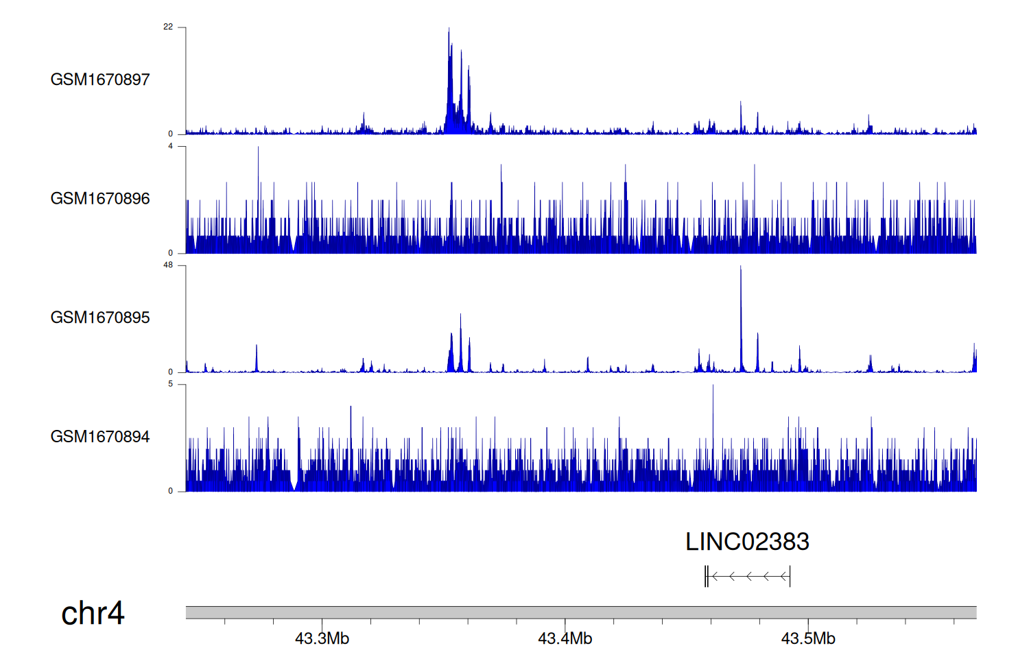 > Dataset: GSE68402 - LINC02383 peak across samples