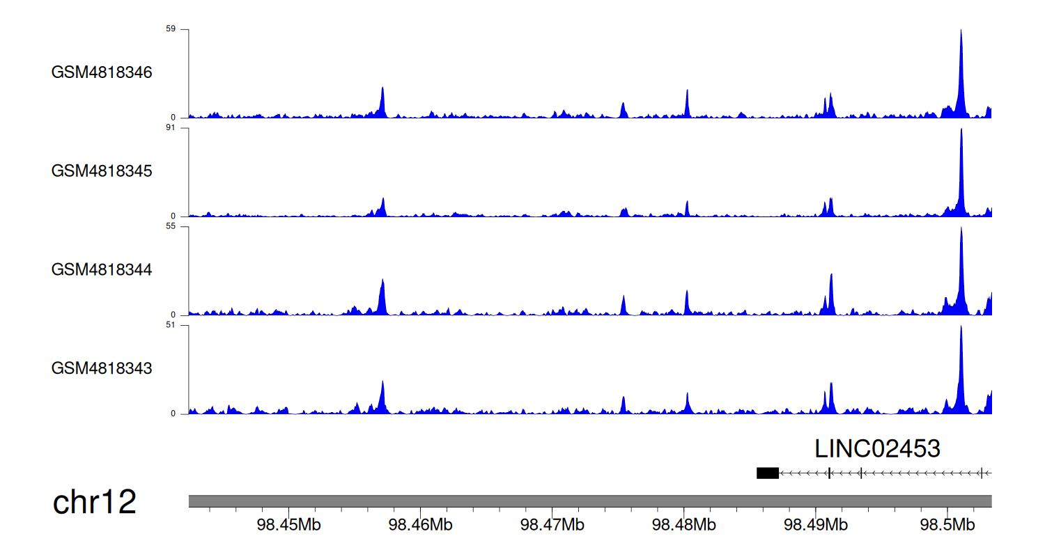 > Dataset: GSE270130 - LINC02453 peak across samples