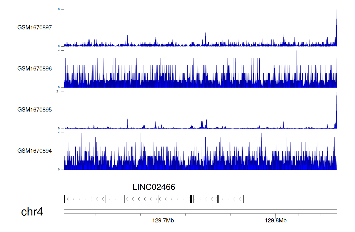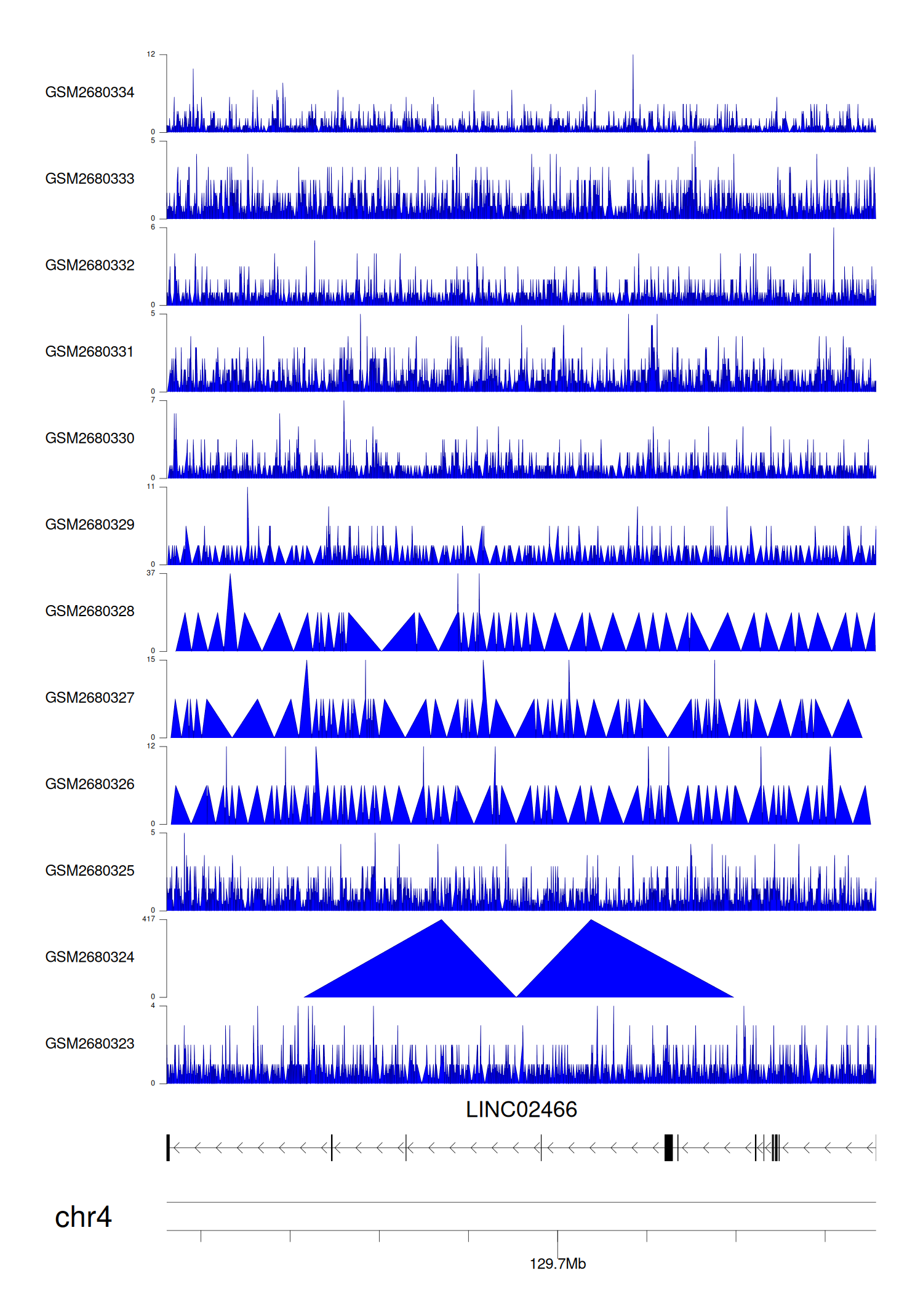 > Dataset: GSE68402 - LINC02466 peak across samples