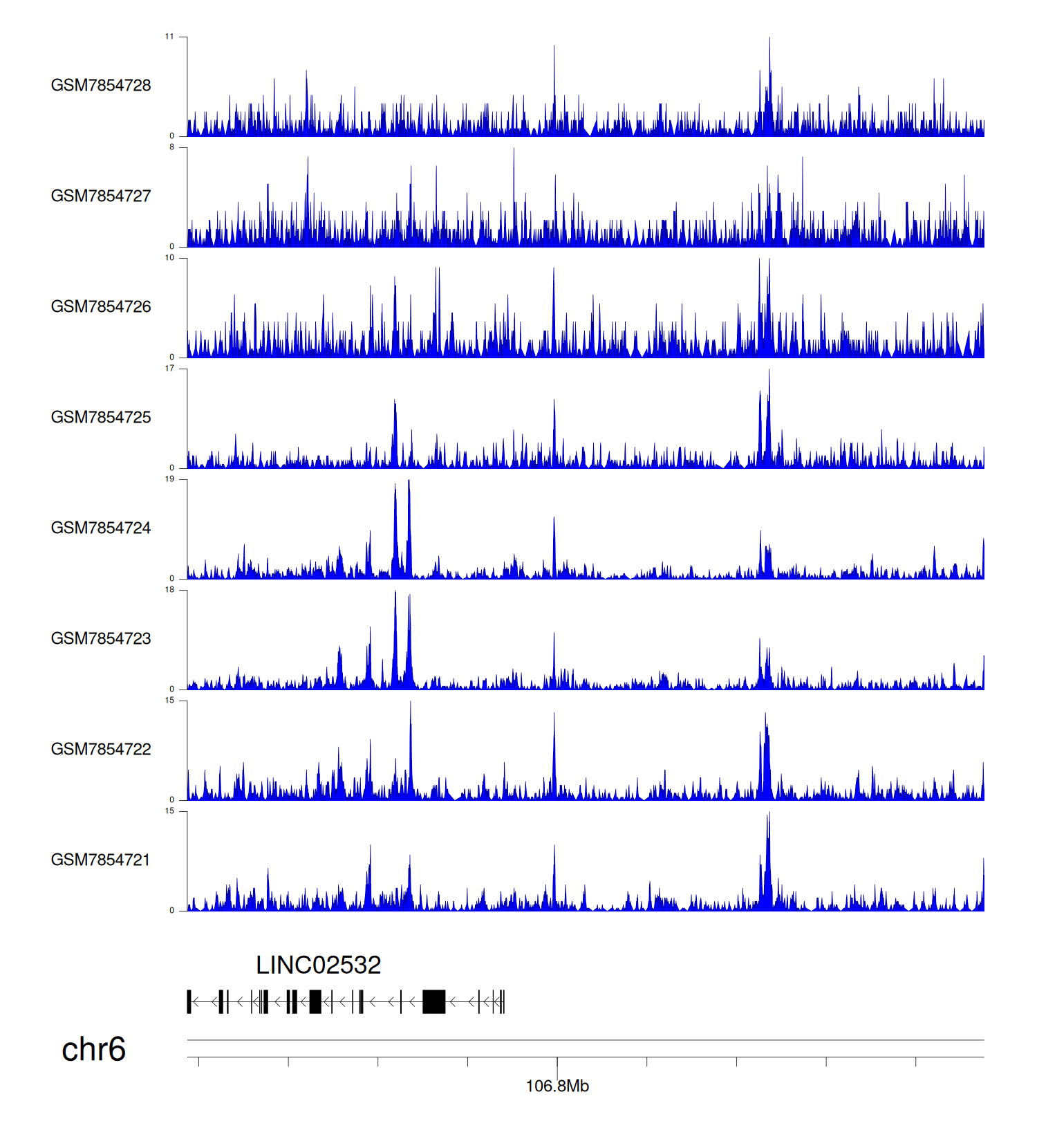 > Dataset: GSE198334 - LINC02532 peak across samples