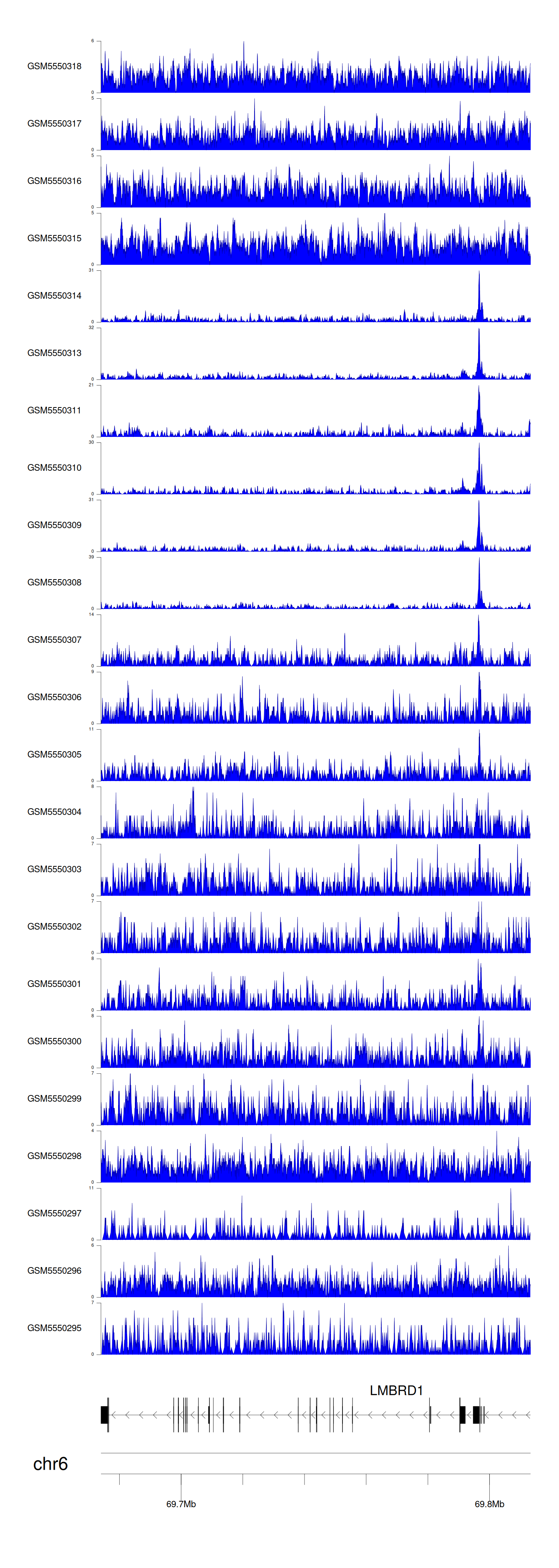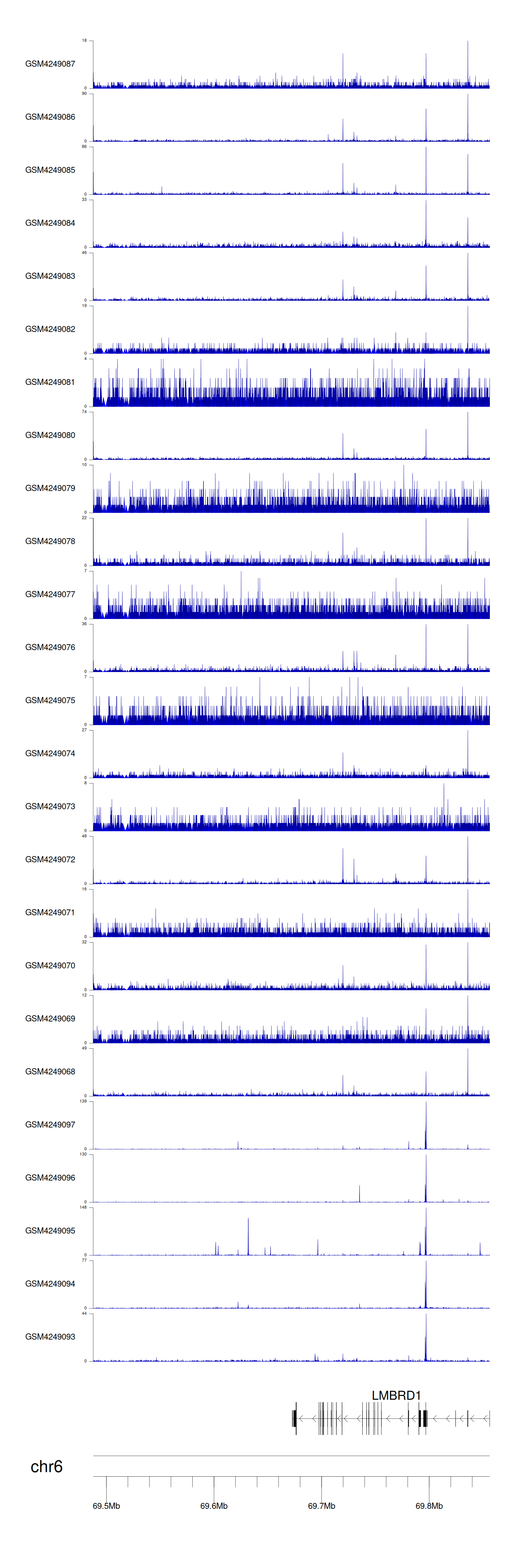 > Dataset: GSE143026 - LMBRD1 peak across samples