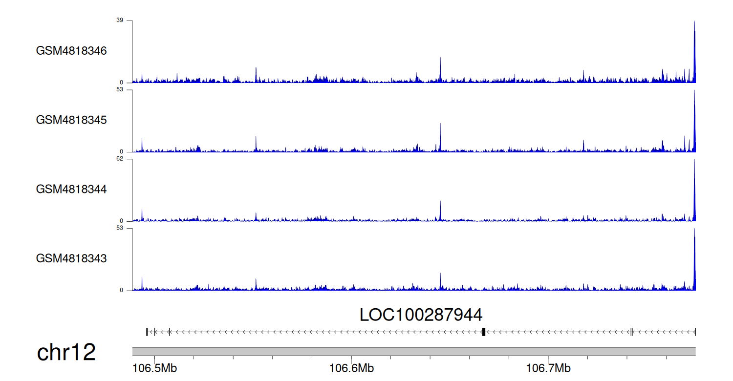 > Dataset: GSE270130 - LOC100287944 peak across samples
