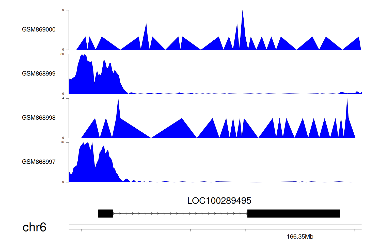 > Dataset: GSE131257 - LOC100289495 peak across samples