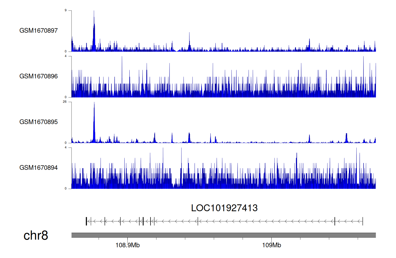 > Dataset: GSE100400 - LOC101927413 peak across samples