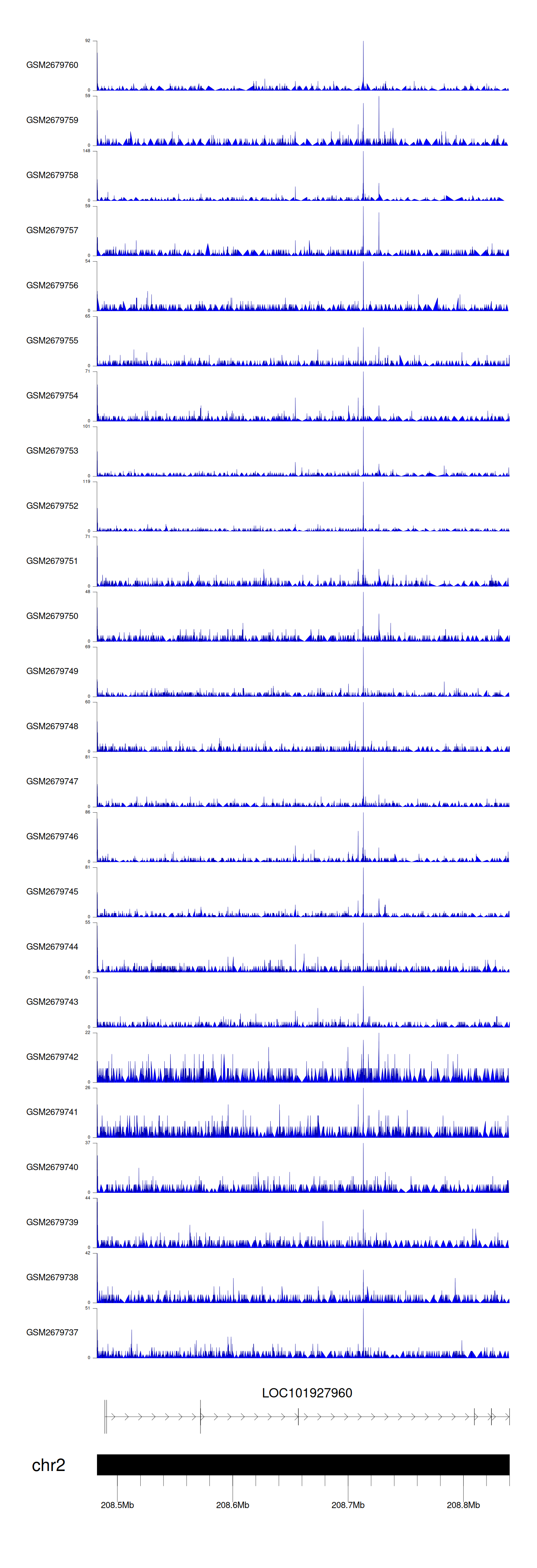 > Dataset: GSE211651 - LOC101927960 peak across samples