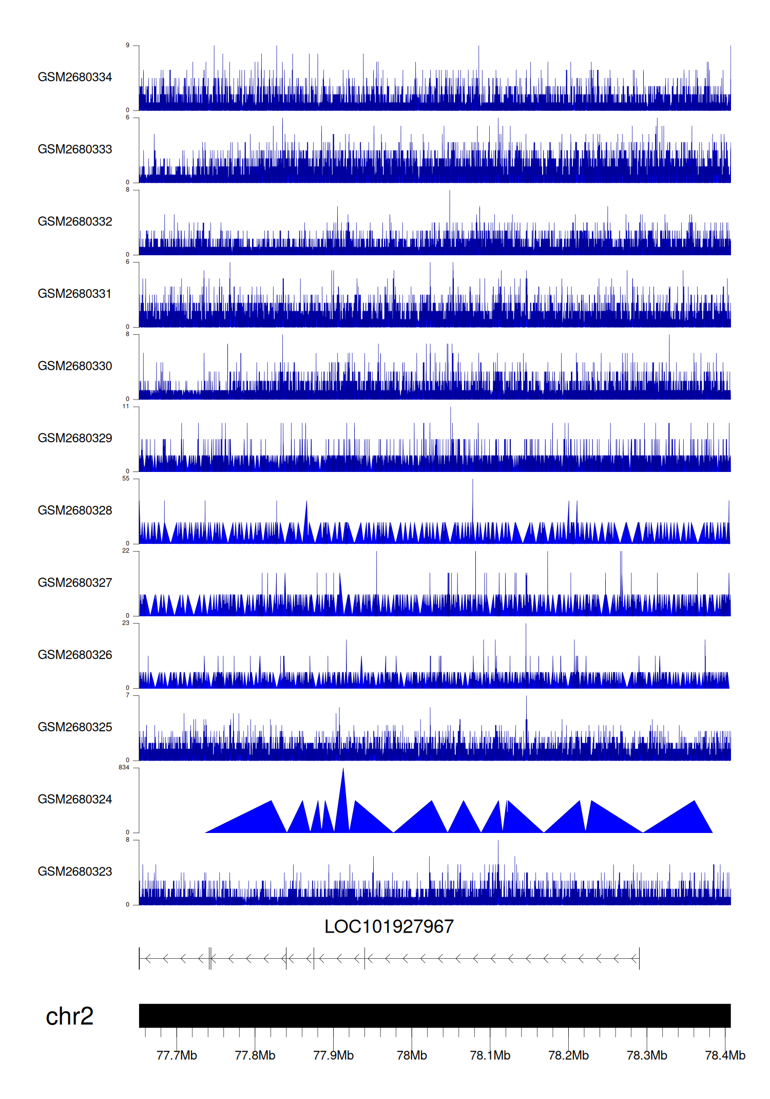 > Dataset: GSE100400 - LOC101927967 peak across samples