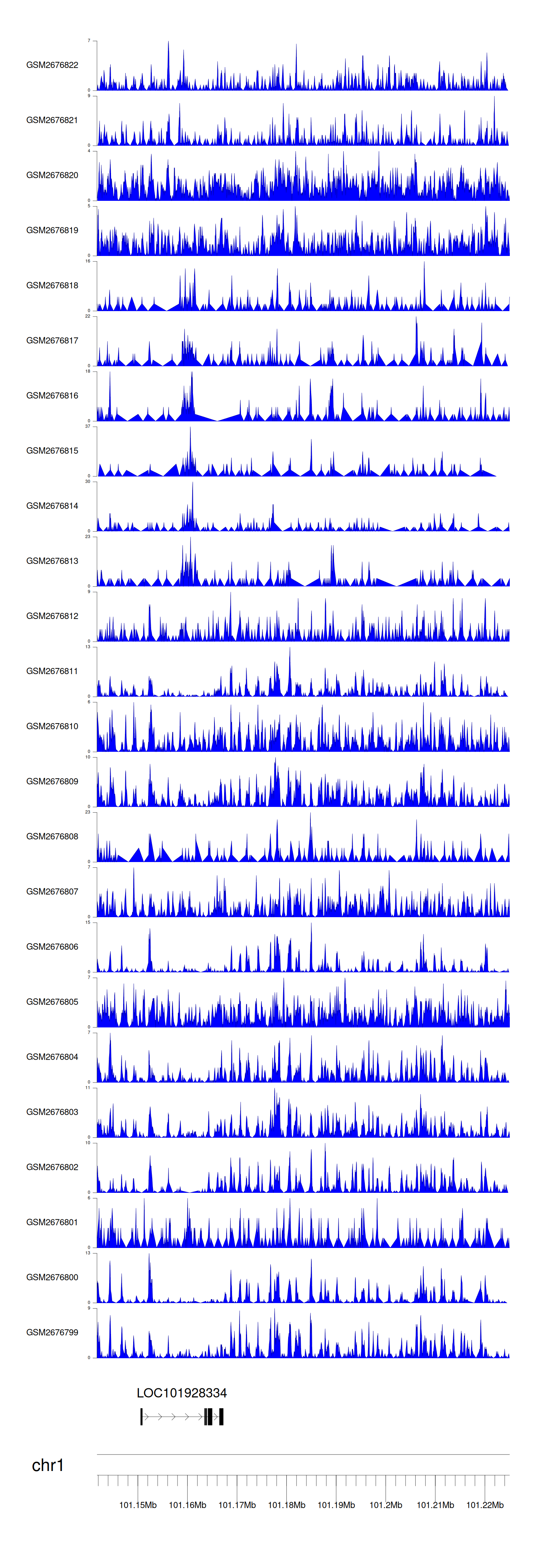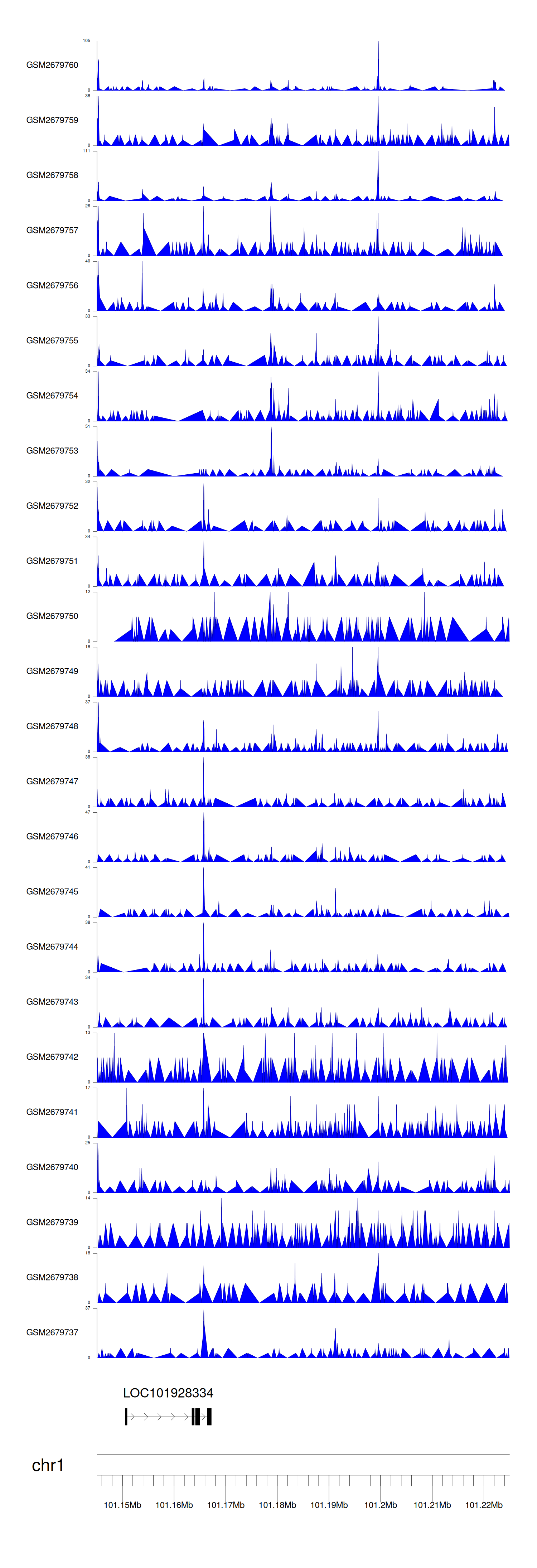 > Dataset: GSE100266 - LOC101928334 peak across samples