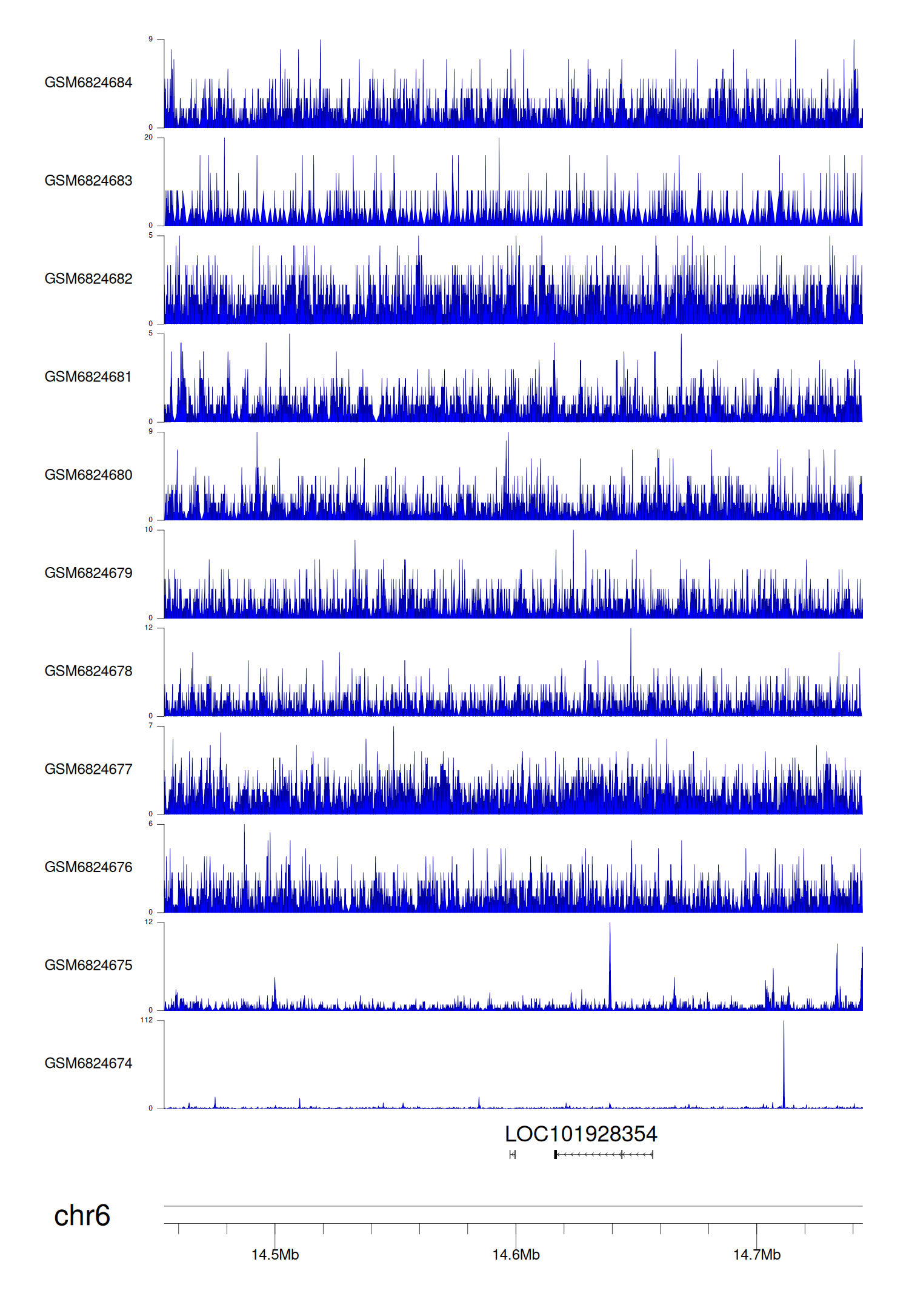 > Dataset: GSE144329 - LOC101928354 peak across samples