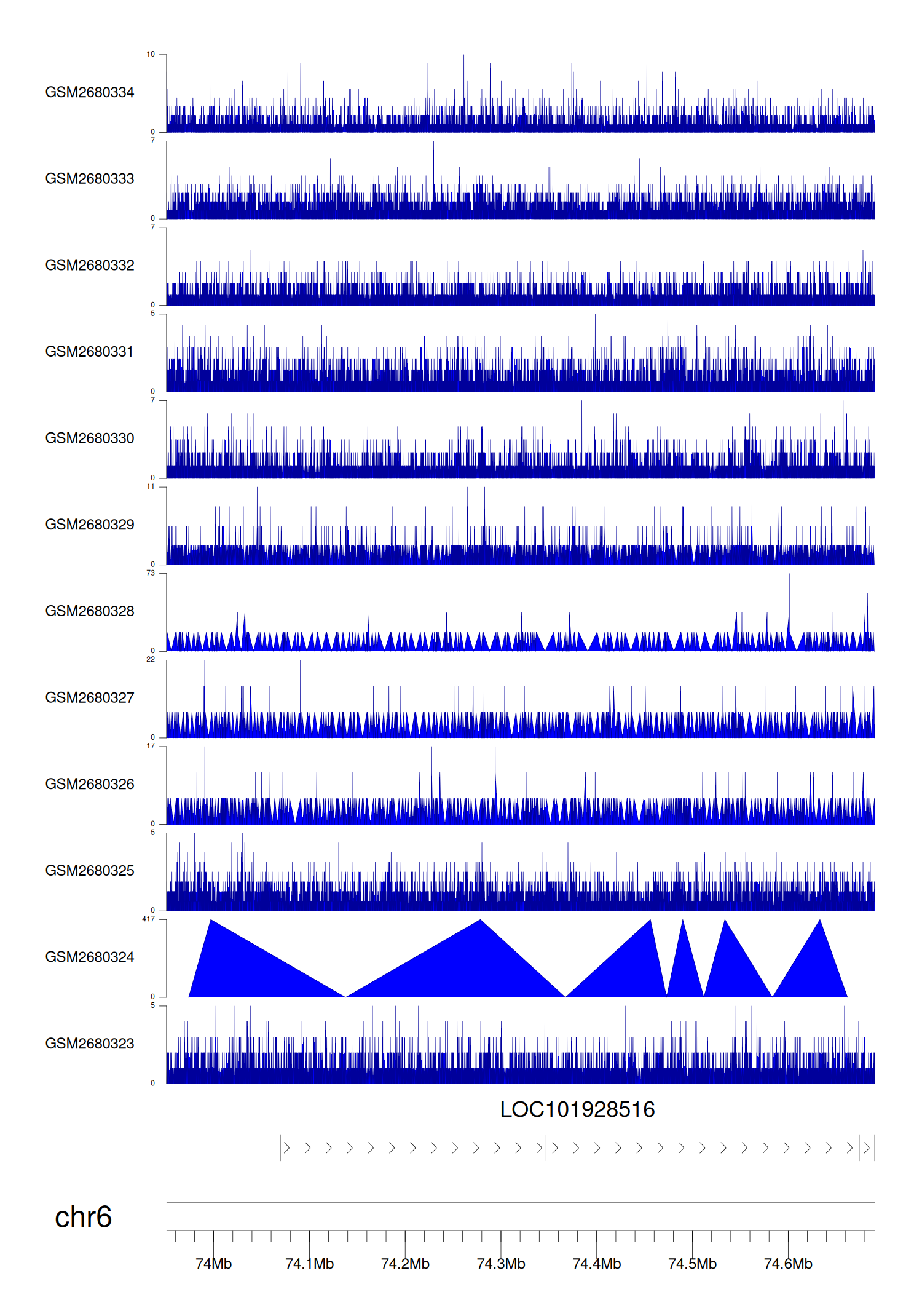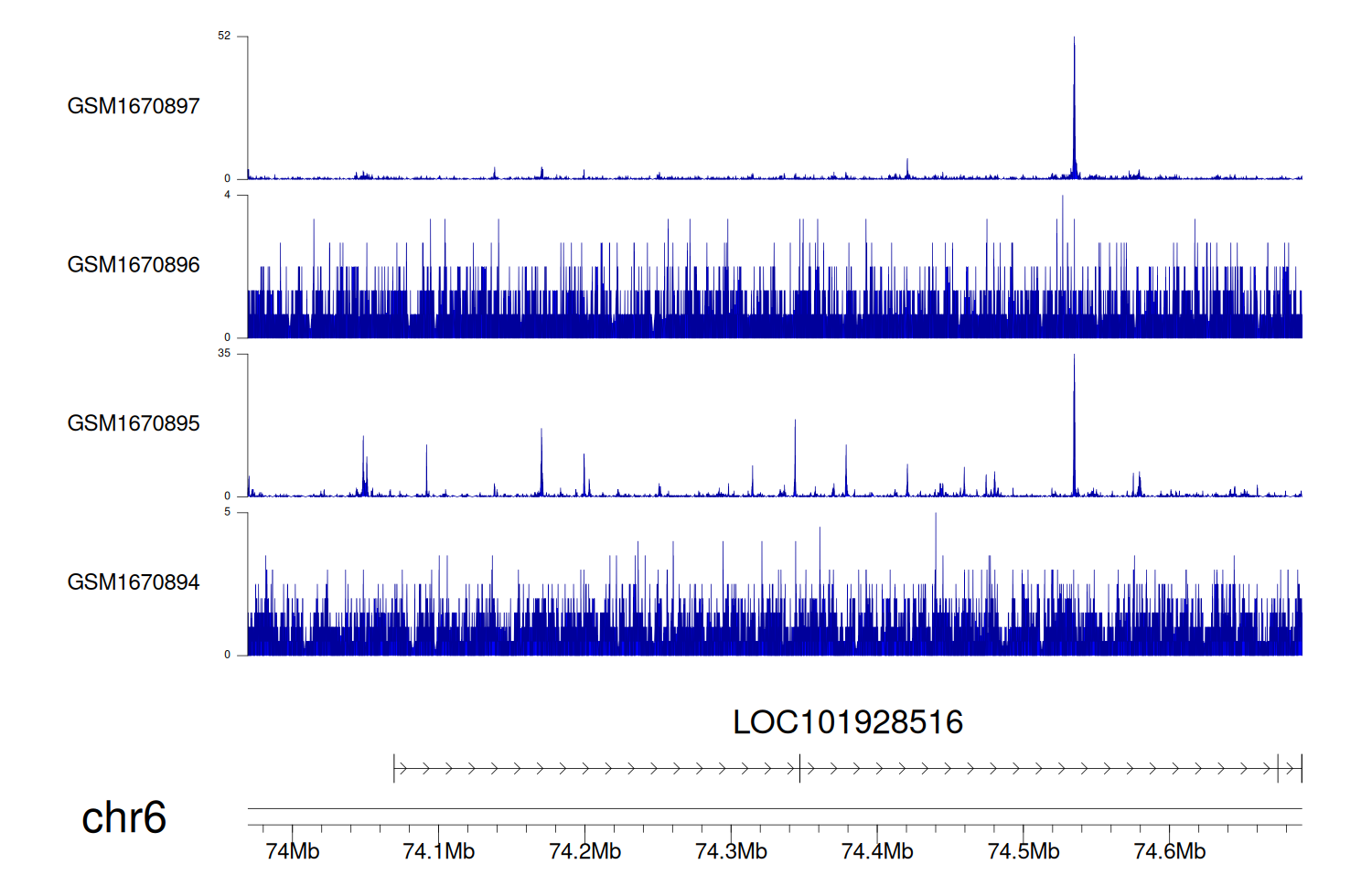 > Dataset: GSE100400 - LOC101928516 peak across samples
