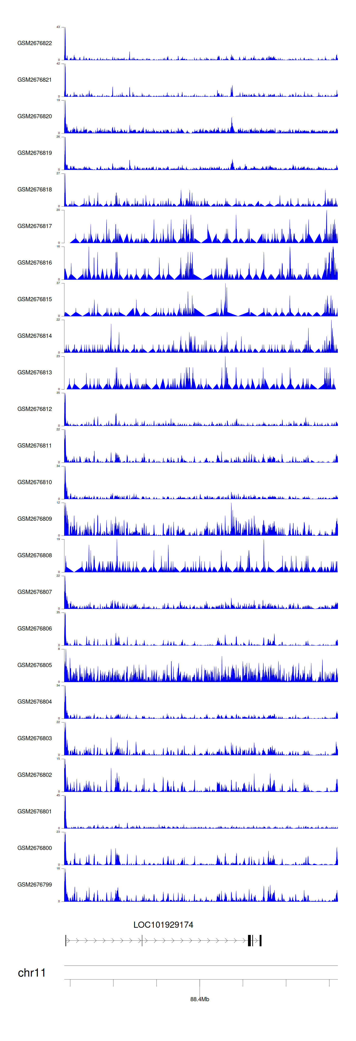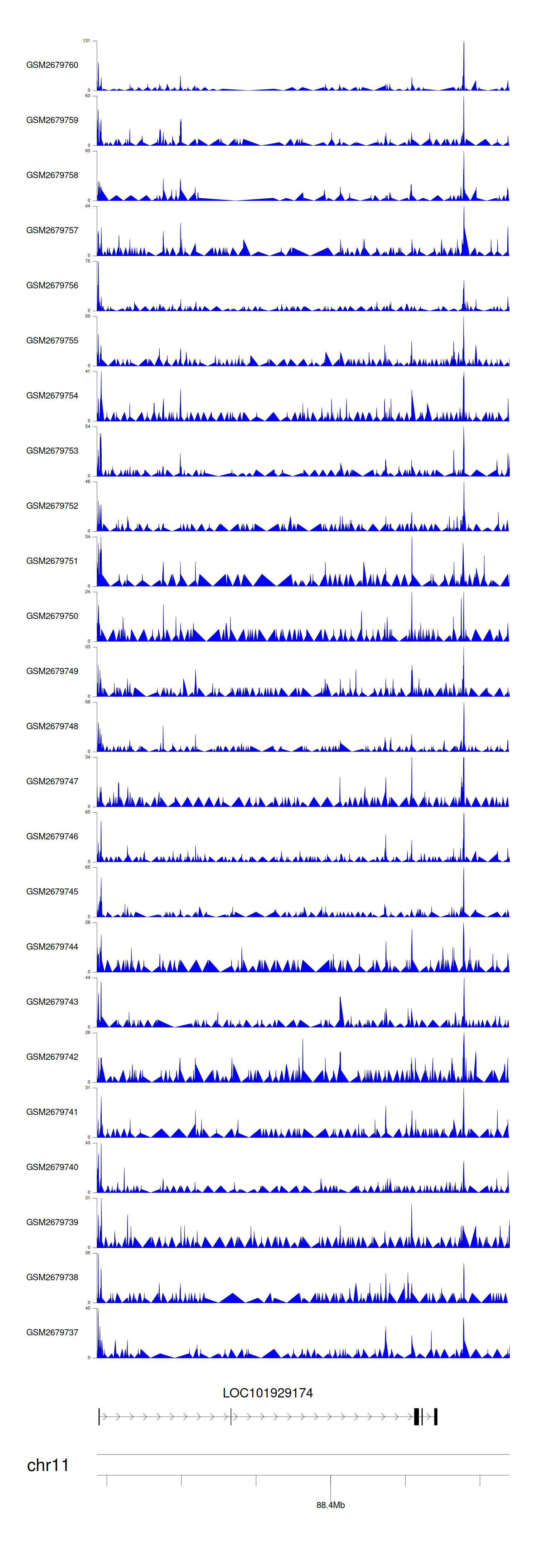 > Dataset: GSE30738 - LOC101929174 peak across samples