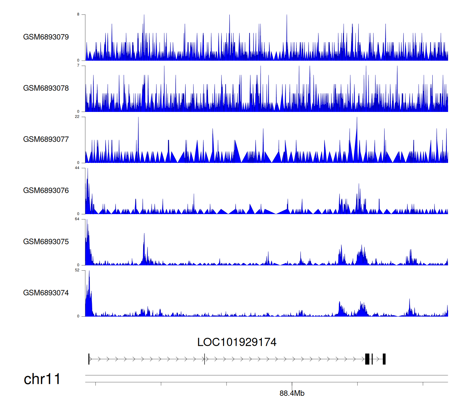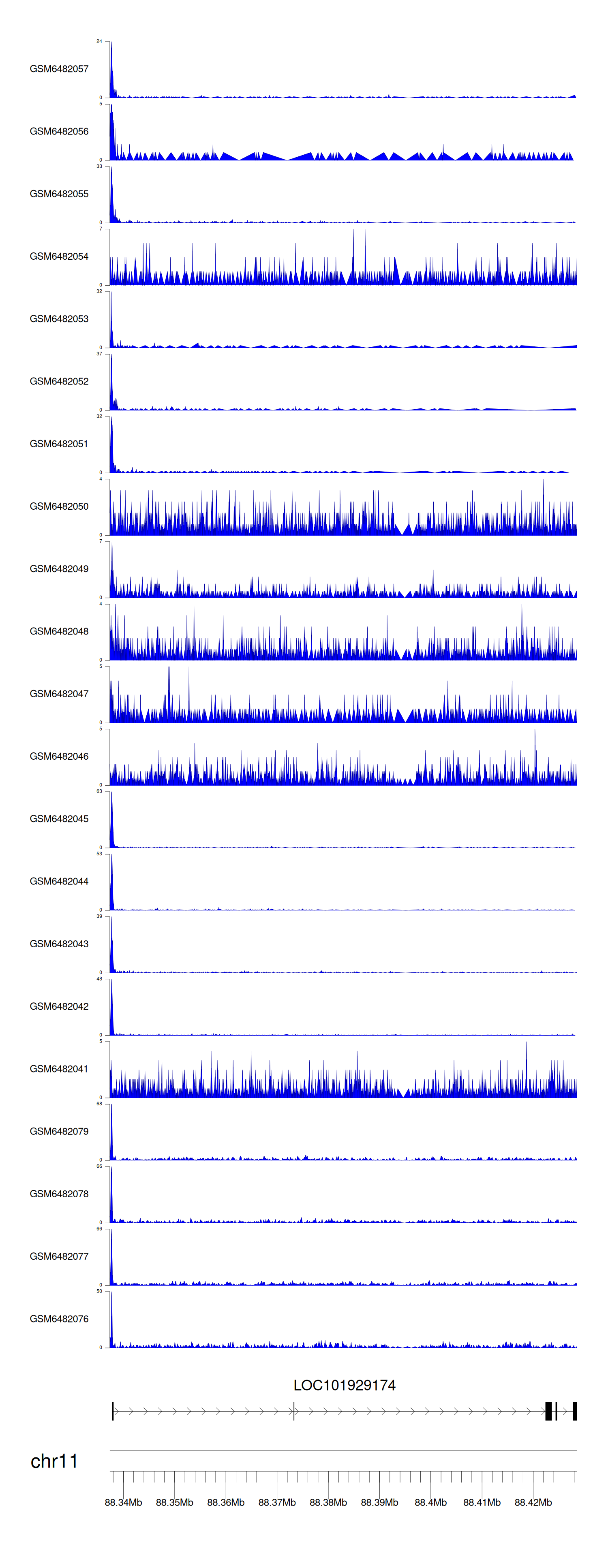 > Dataset: GSE211651 - LOC101929174 peak across samples