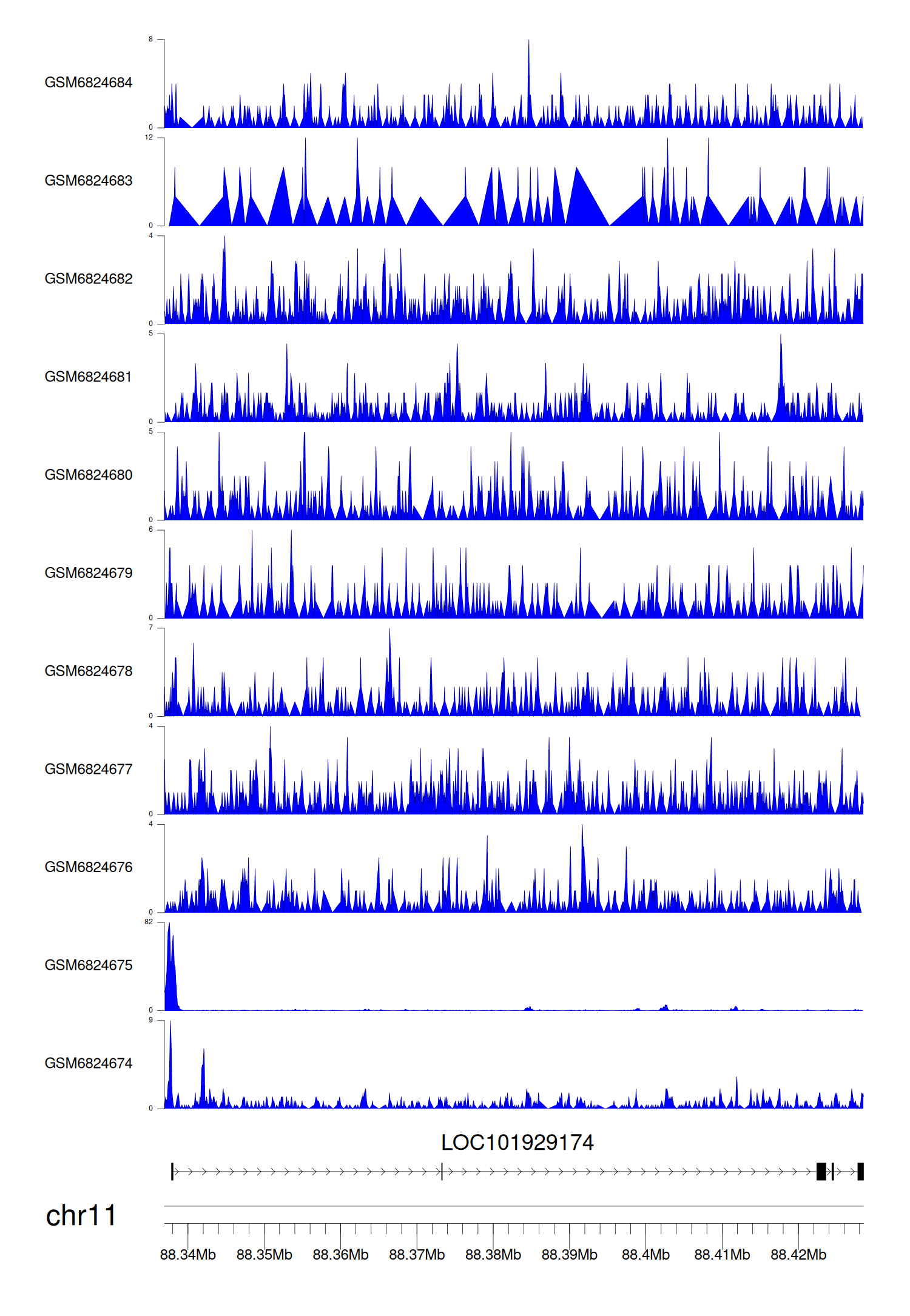 > Dataset: GSE221688 - LOC101929174 peak across samples