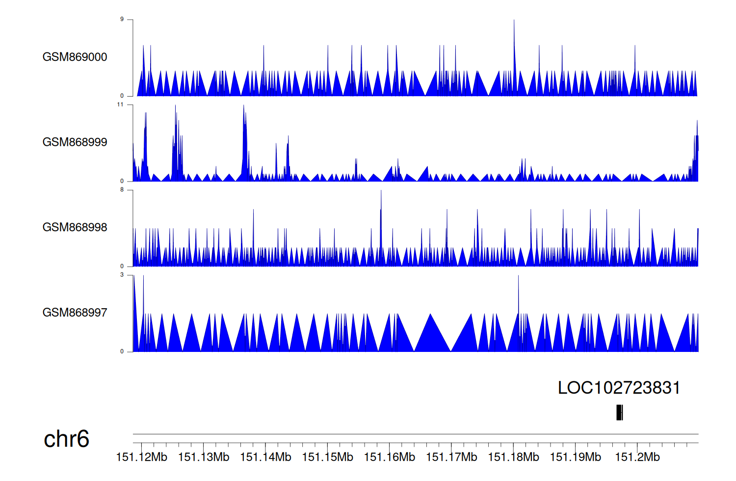 > Dataset: GSE68402 - LOC102723831 peak across samples