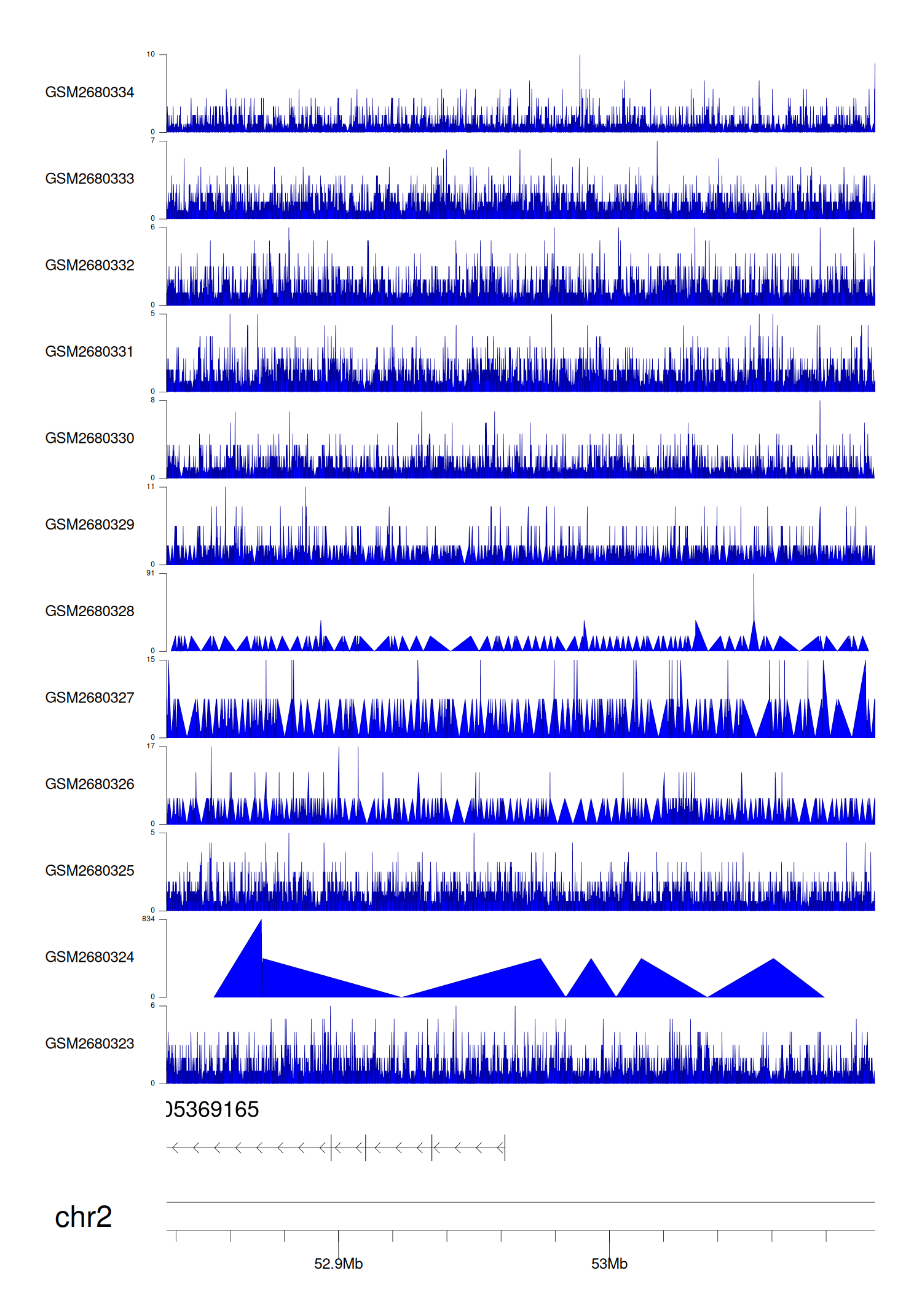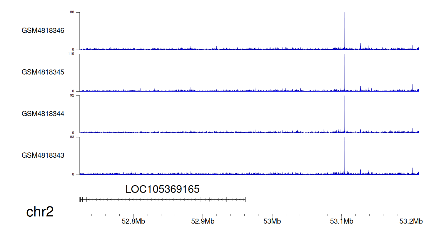 > Dataset: GSE131257 - LOC105369165 peak across samples