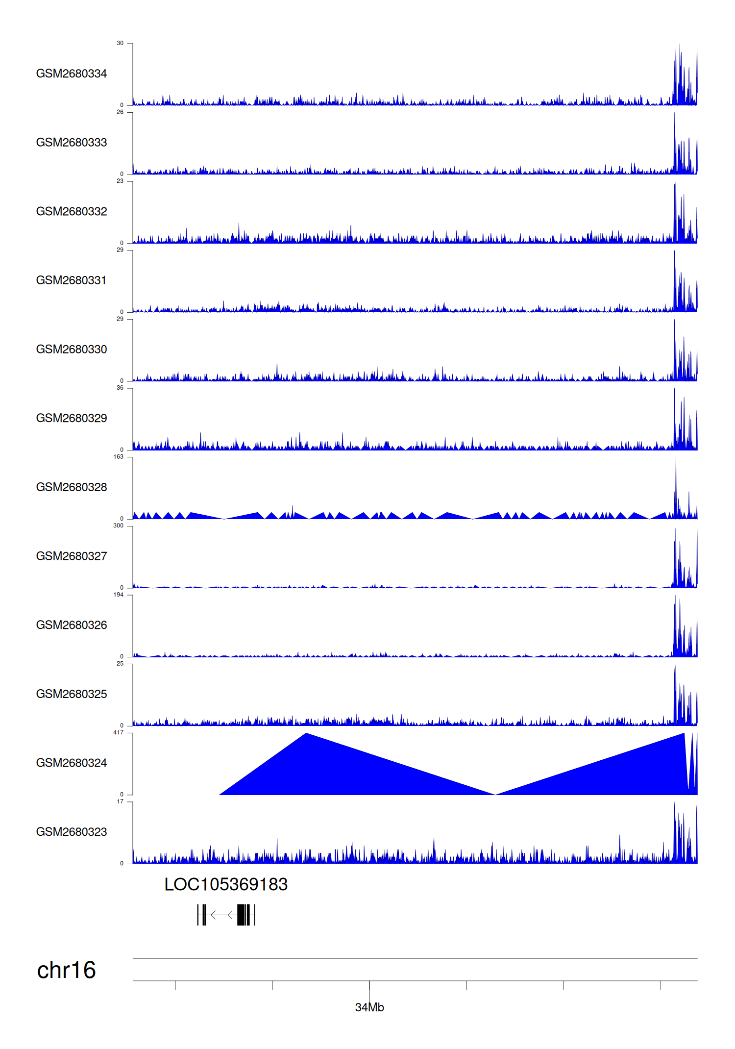> Dataset: GSE68402 - LOC105369183 peak across samples
