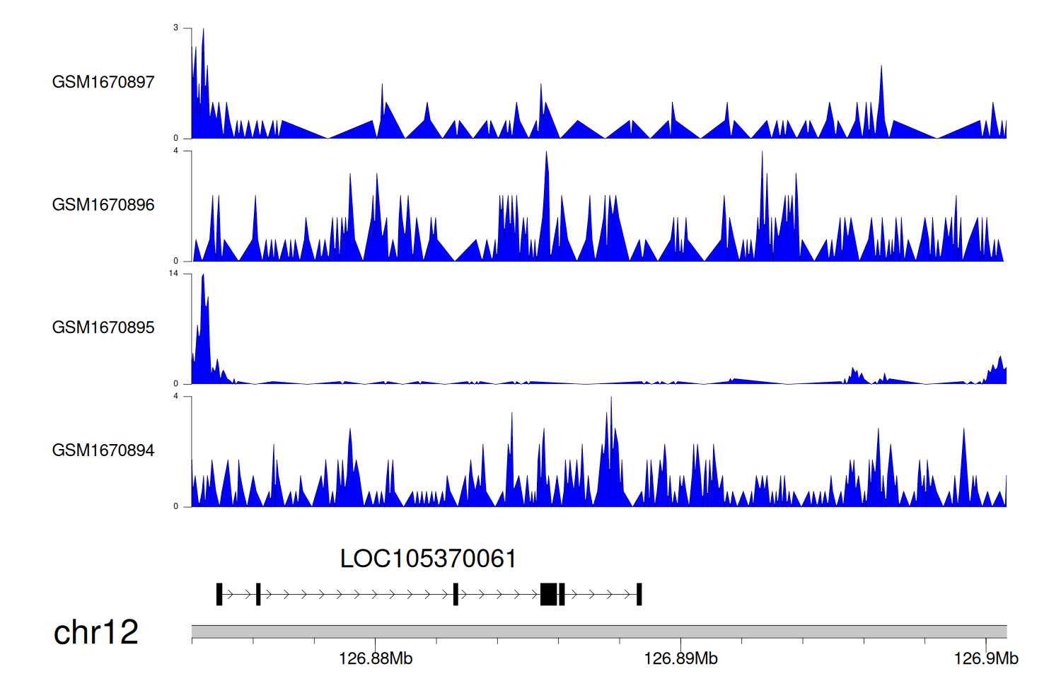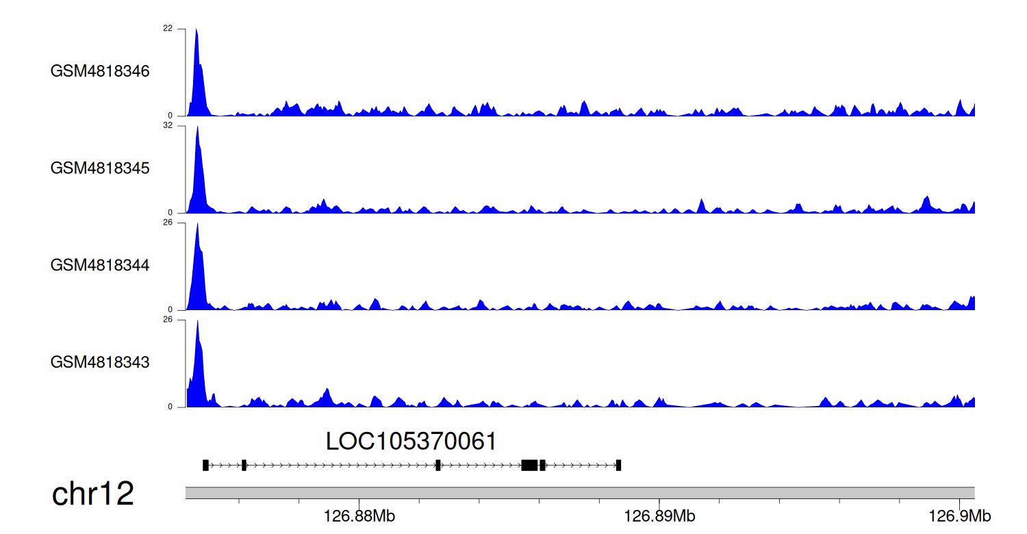 > Dataset: GSE131257 - LOC105370061 peak across samples