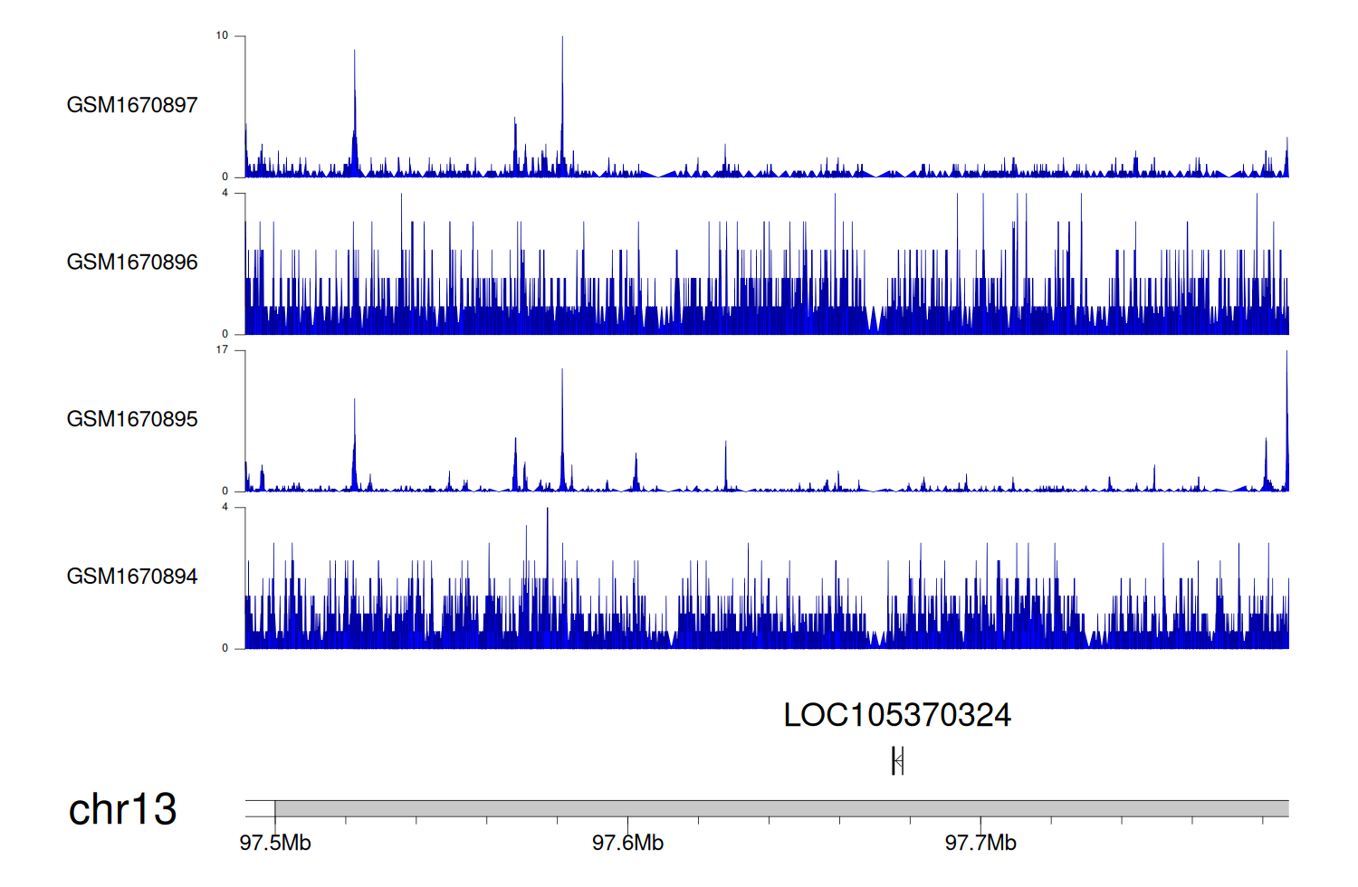> Dataset: GSE68402 - LOC105370324 peak across samples