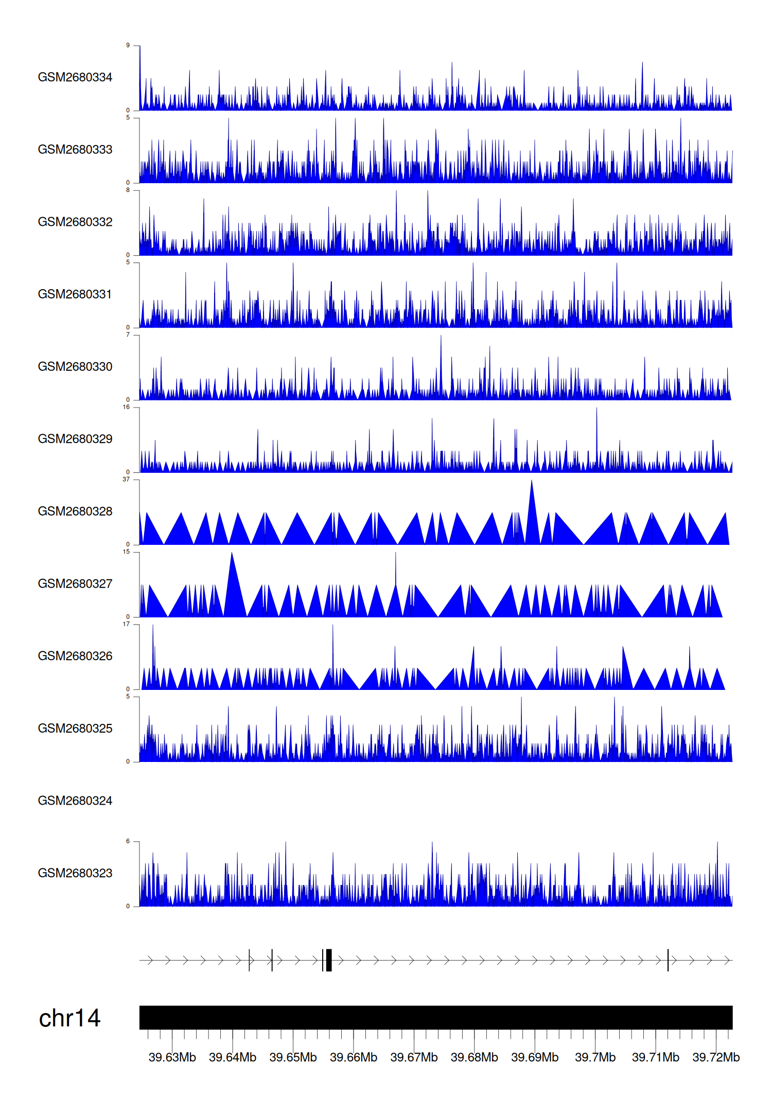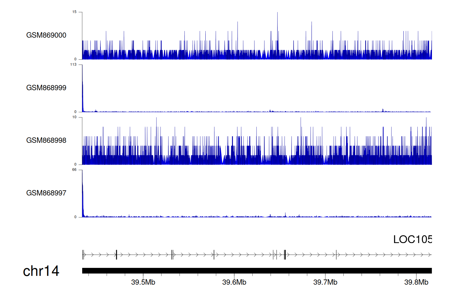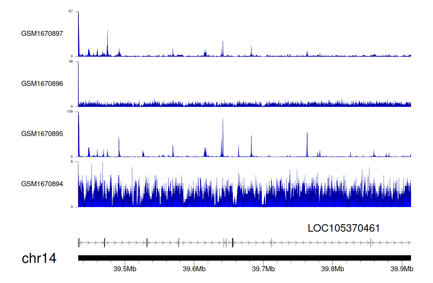 > Dataset: GSE68402 - LOC105370461 peak across samples