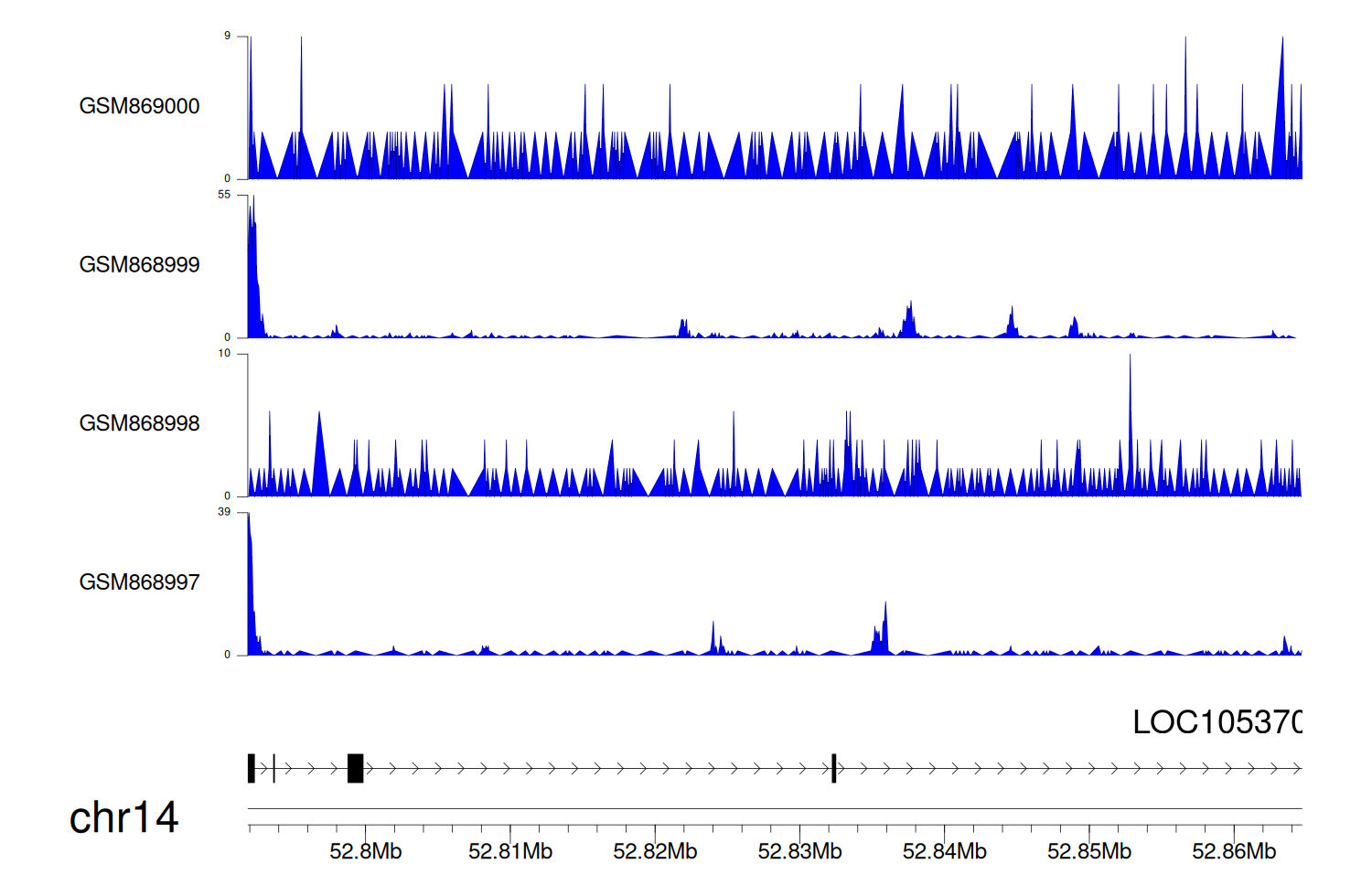 > Dataset: GSE131257 - LOC105370500 peak across samples