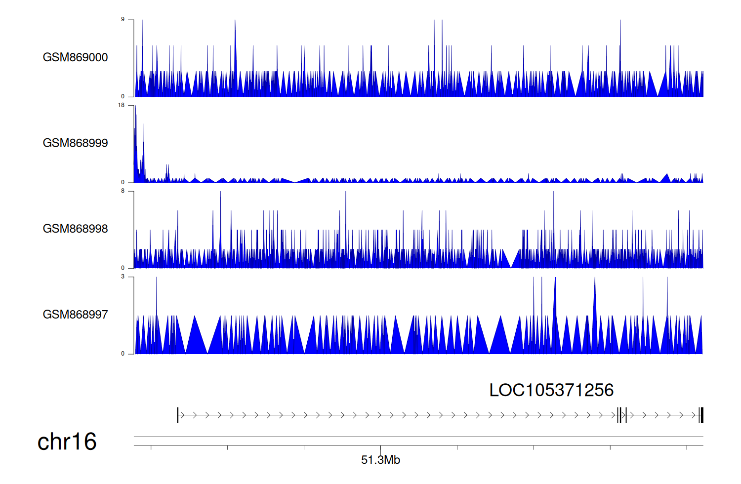 > Dataset: GSE131257 - LOC105371256 peak across samples