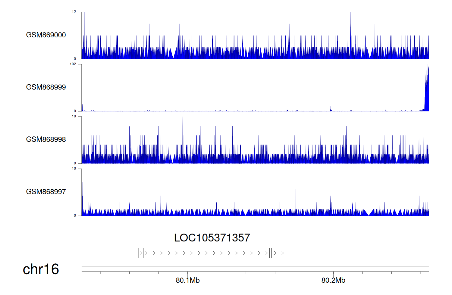 > Dataset: GSE68402 - LOC105371357 peak across samples