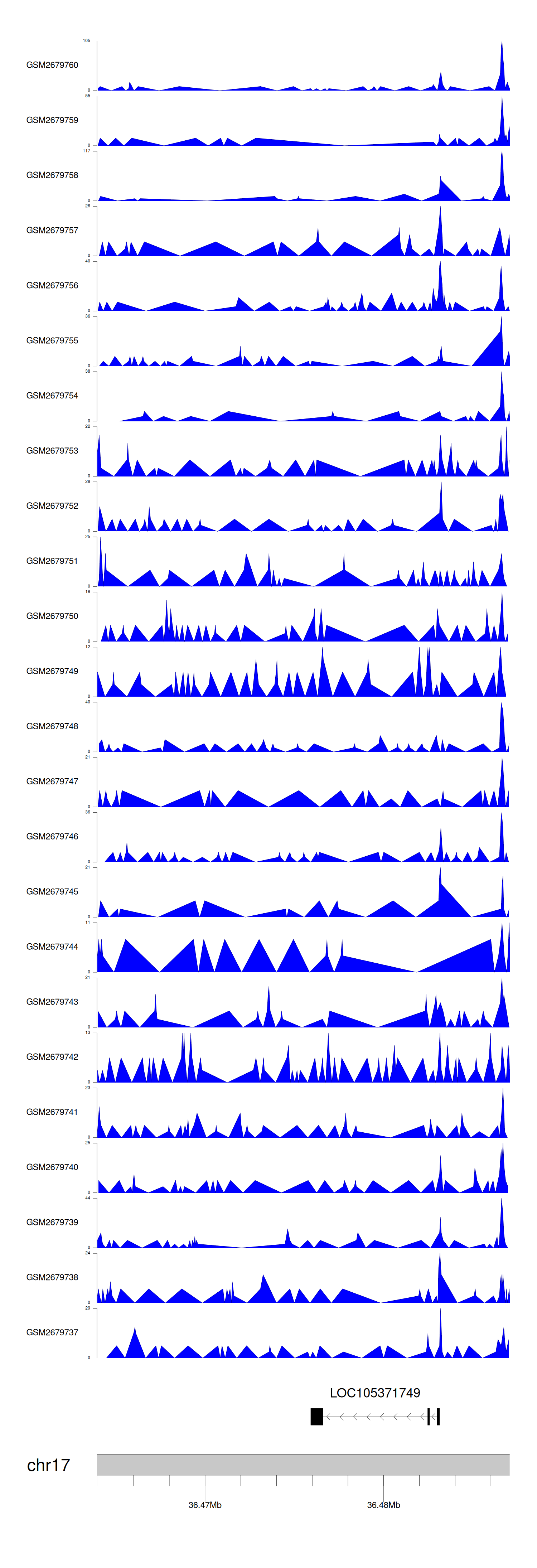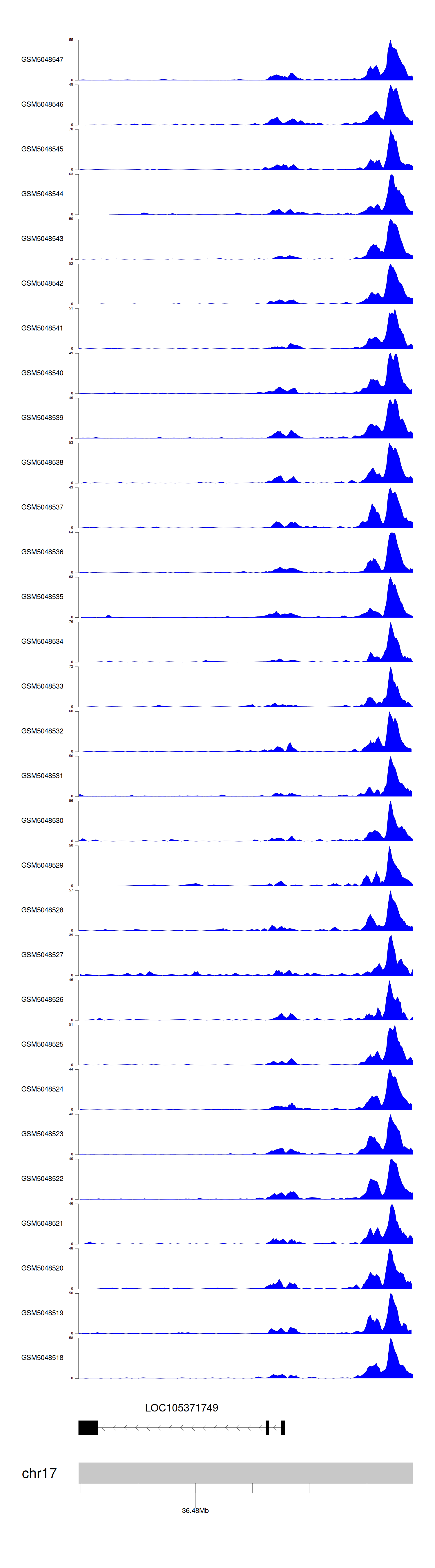 > Dataset: GSE100376 - LOC105371749 peak across samples
