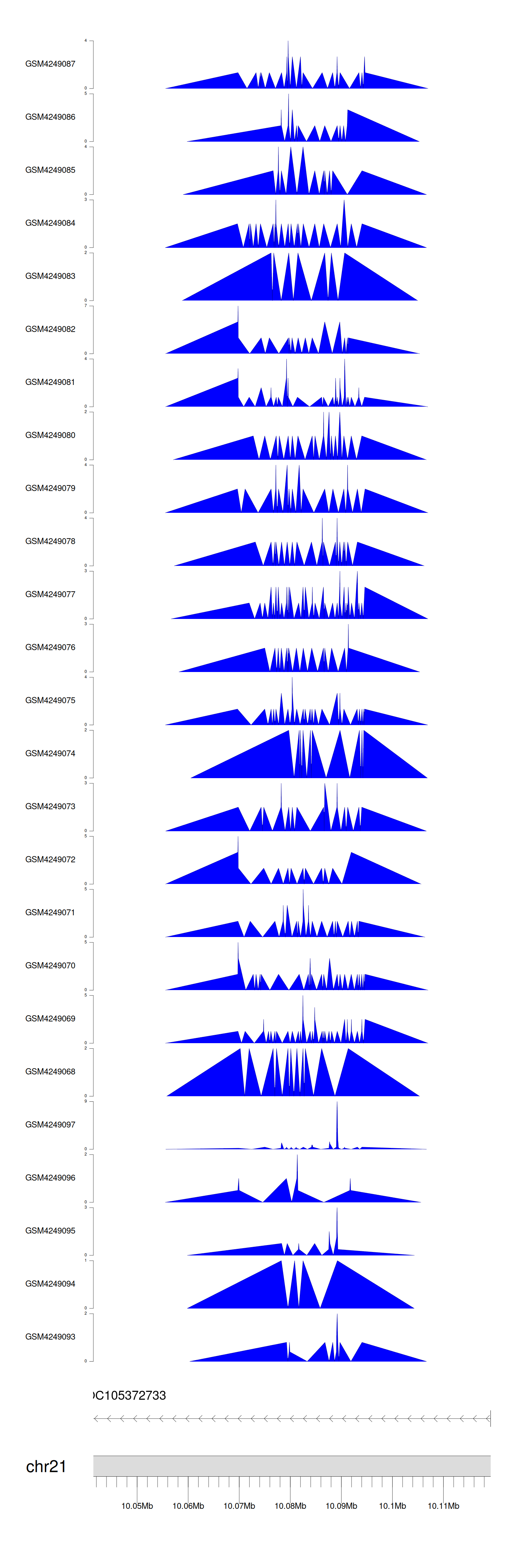 When the gene can detect a peak in the dataset, a peak plot will be displayed.