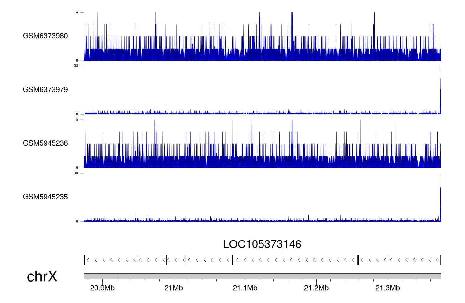 > Dataset: GSE198334 - LOC105373146 peak across samples
