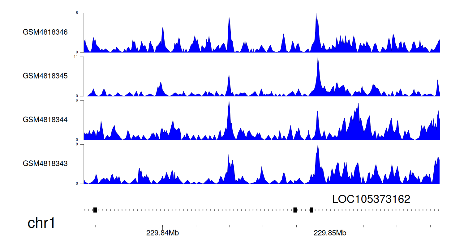 > Dataset: GSE131257 - LOC105373162 peak across samples