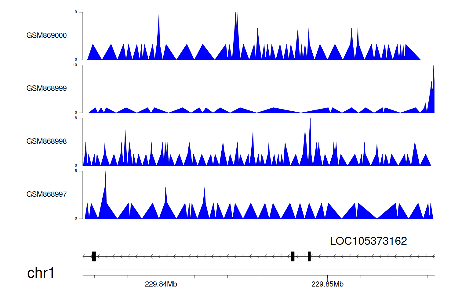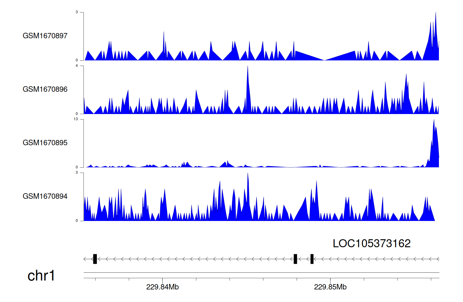 > Dataset: GSE68402 - LOC105373162 peak across samples