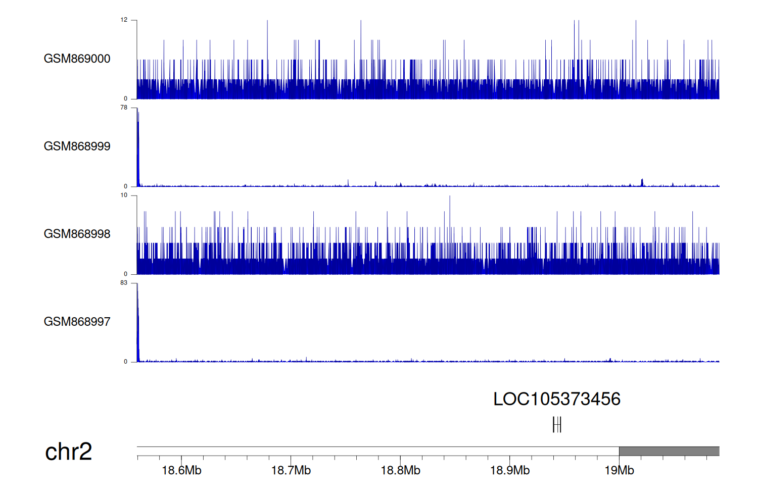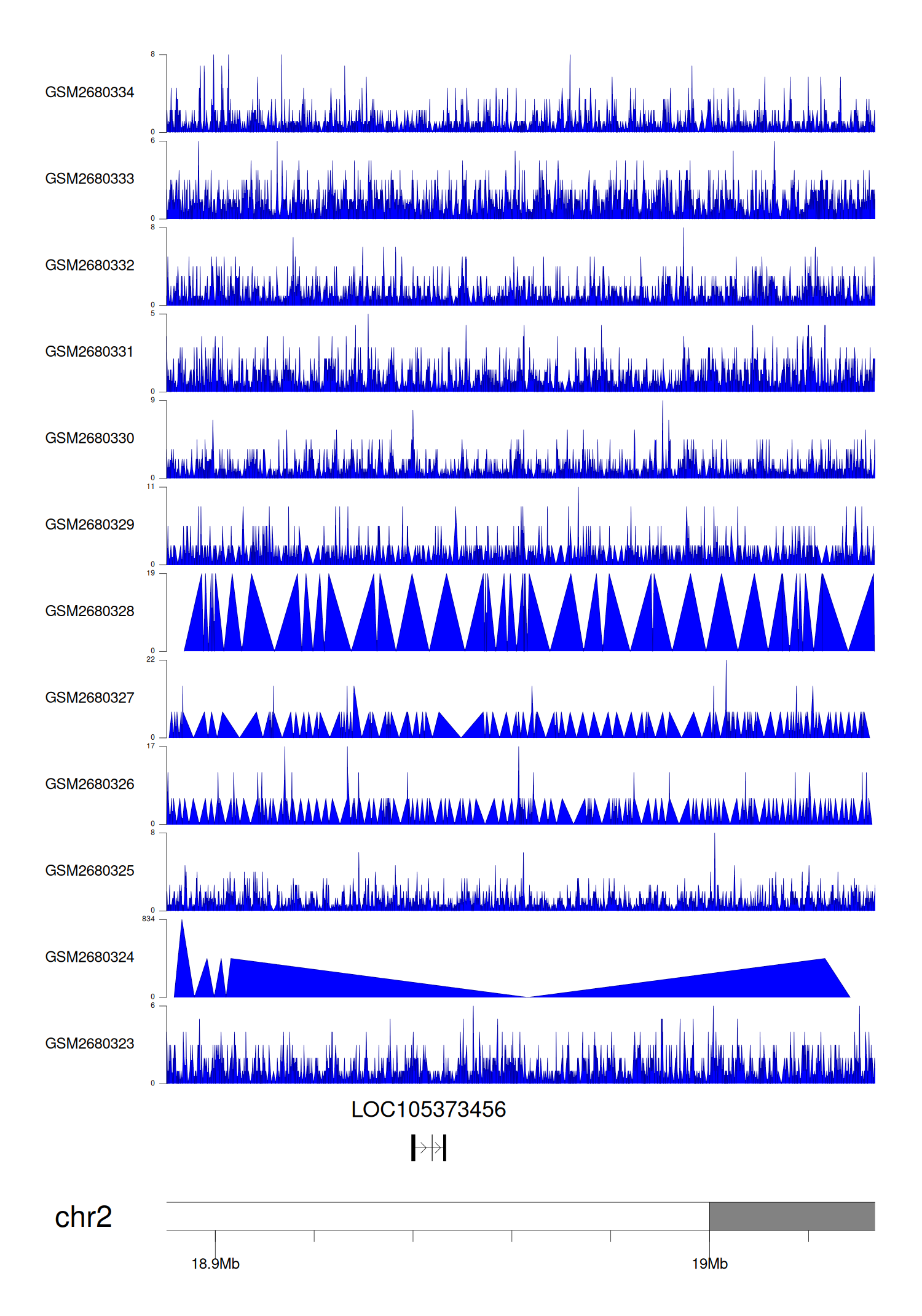 > Dataset: GSE131257 - LOC105373456 peak across samples