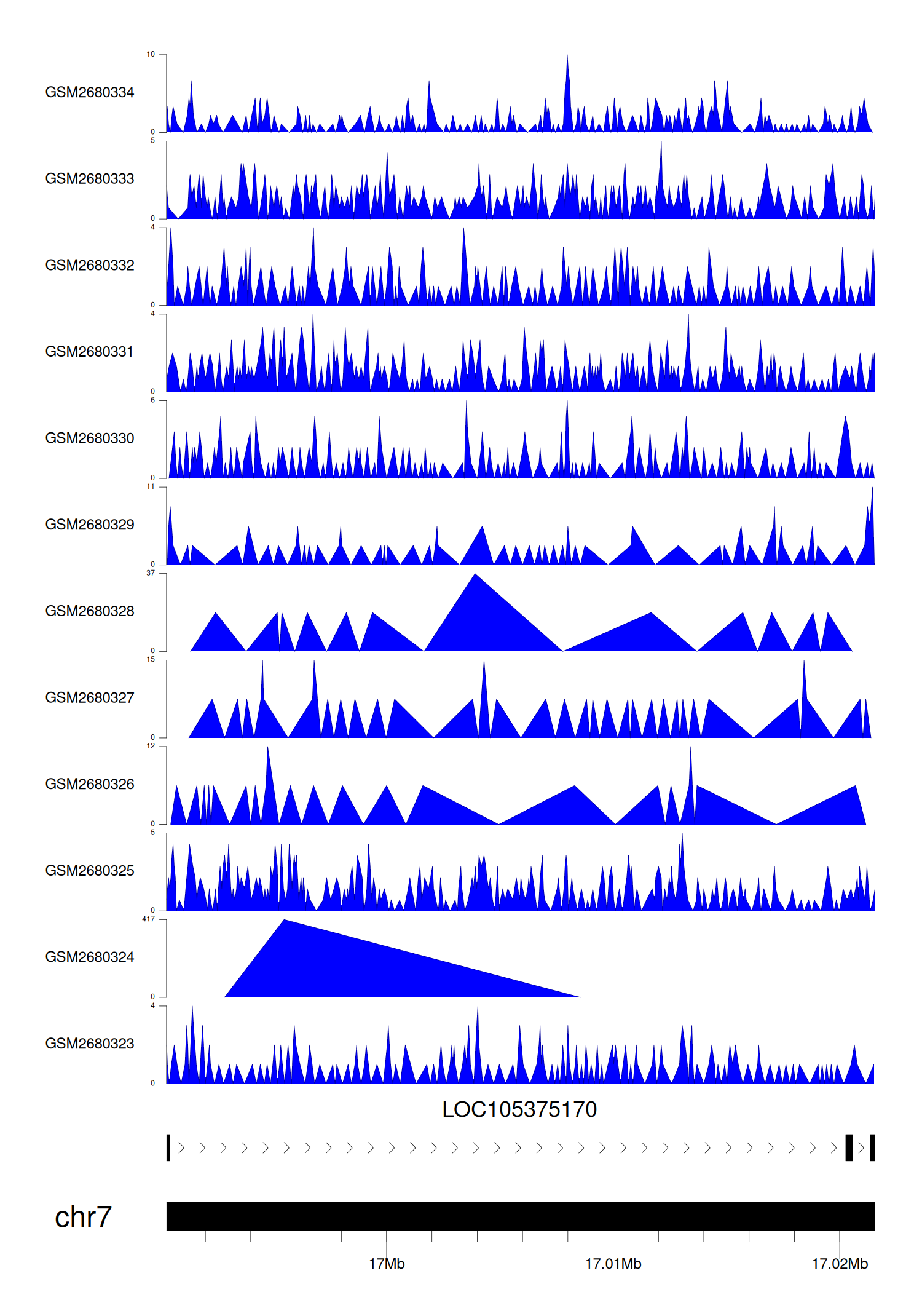 > Dataset: GSE131257 - LOC105375170 peak across samples