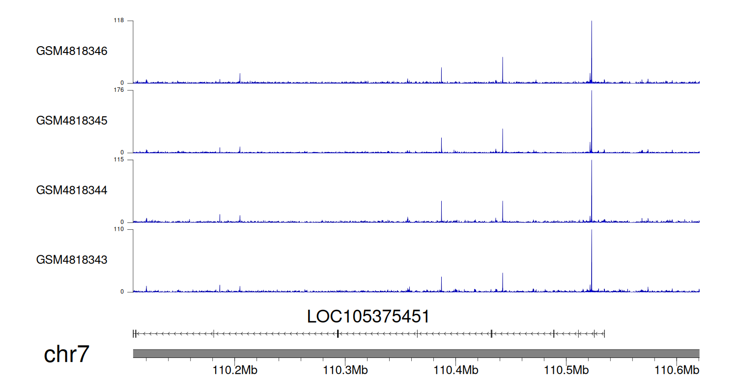 > Dataset: GSE131257 - LOC105375451 peak across samples