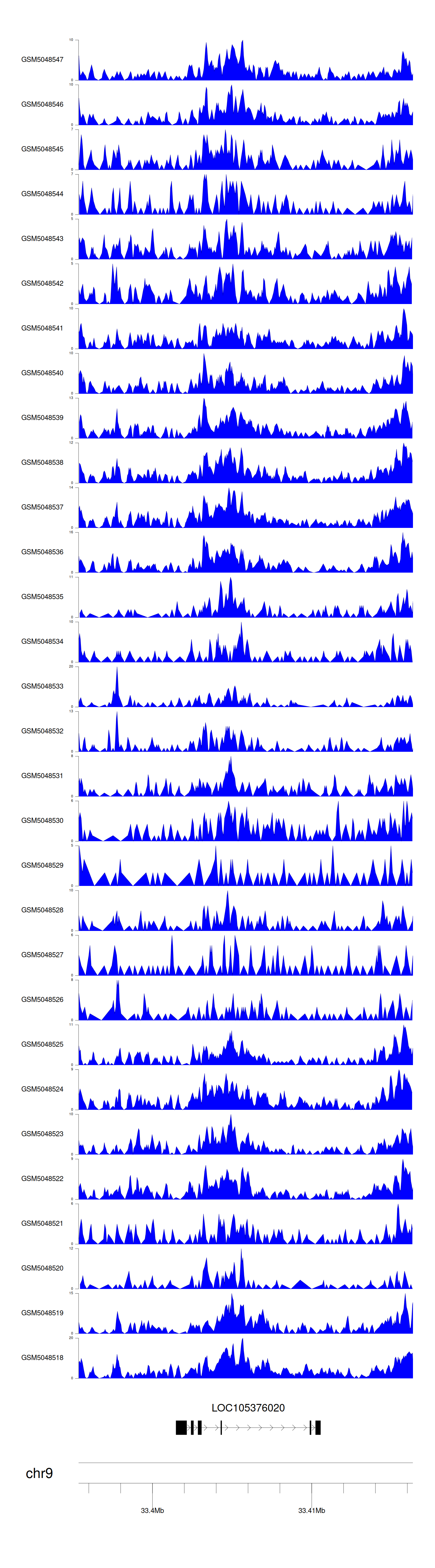 > Dataset: GSE100376 - LOC105376020 peak across samples