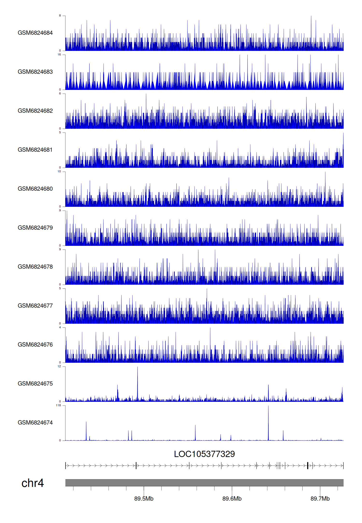 > Dataset: GSE144329 - LOC105377329 peak across samples