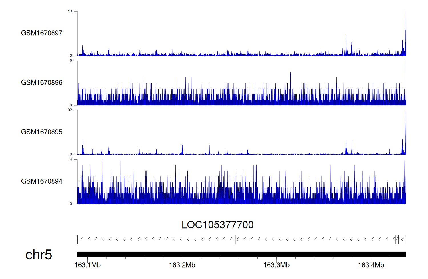 > Dataset: GSE68402 - LOC105377700 peak across samples