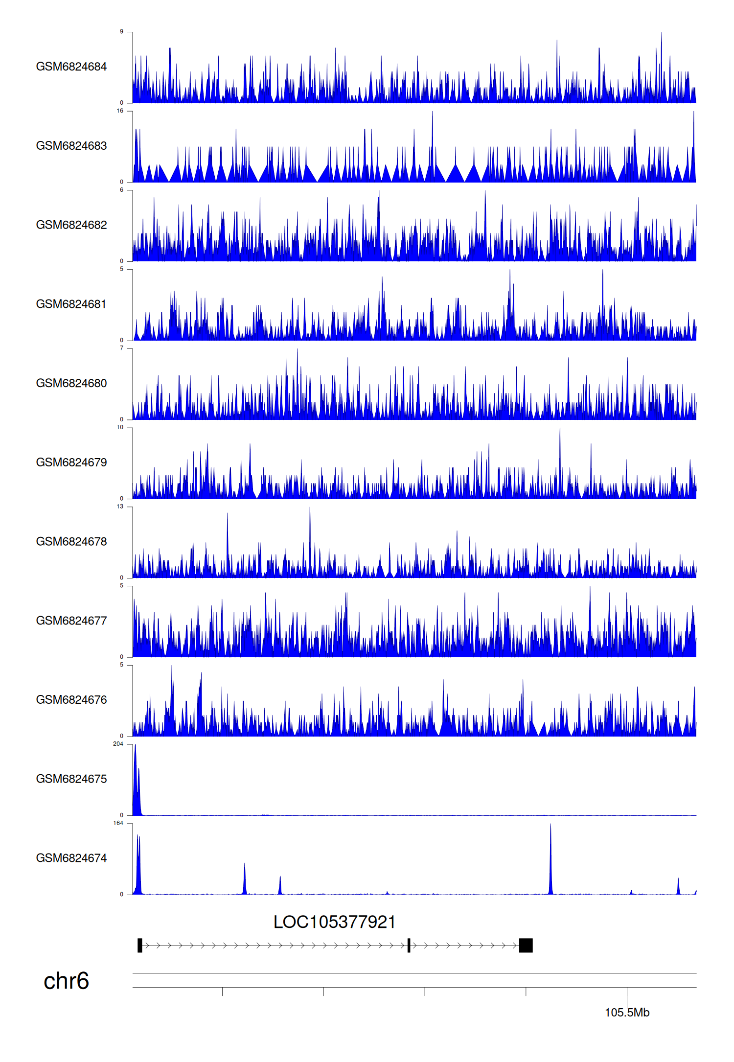 > Dataset: GSE144329 - LOC105377921 peak across samples