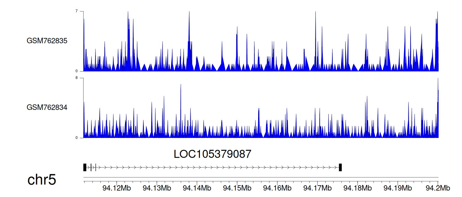 > Dataset: GSE144329 - LOC105379087 peak across samples