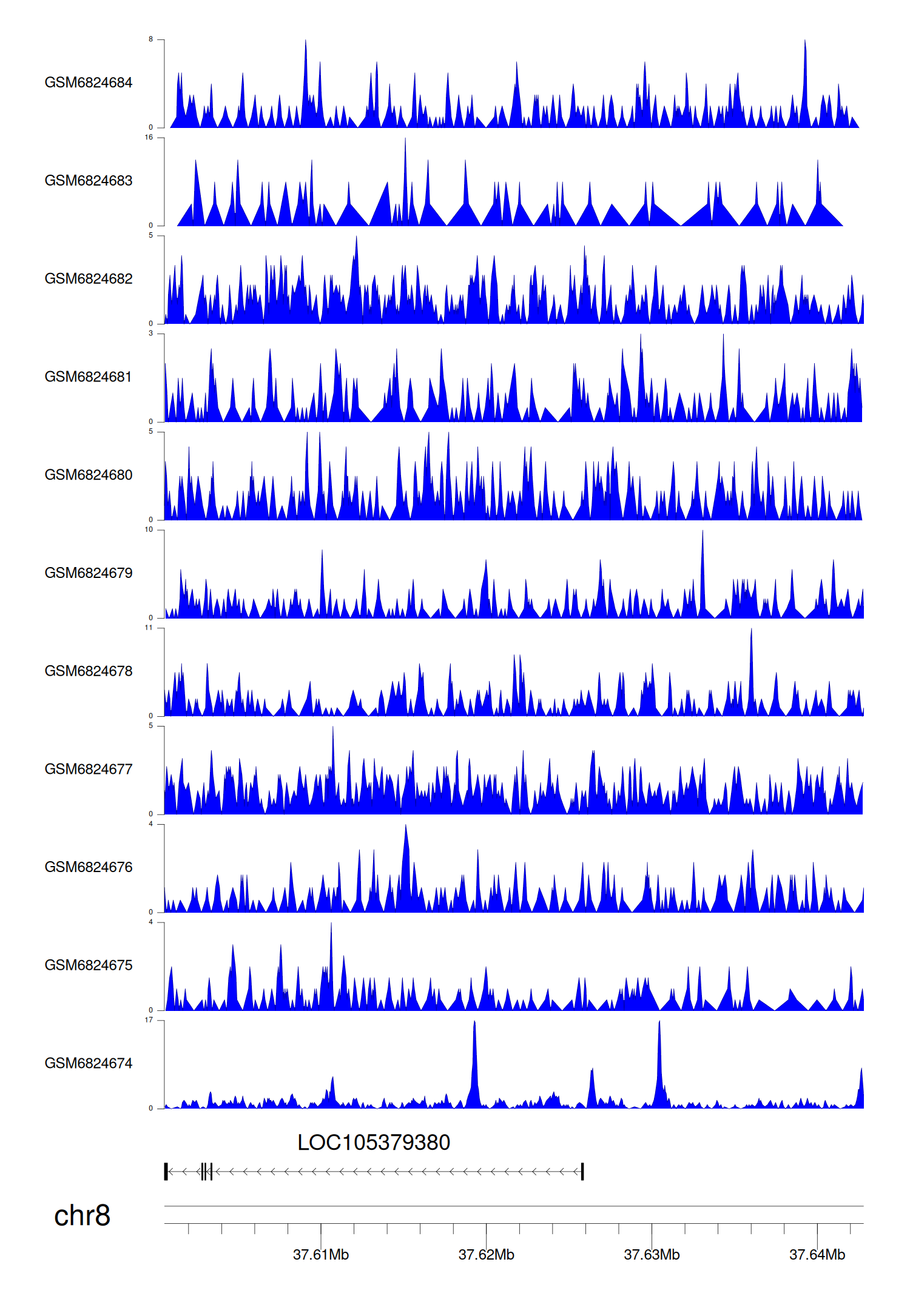 > Dataset: GSE144329 - LOC105379380 peak across samples